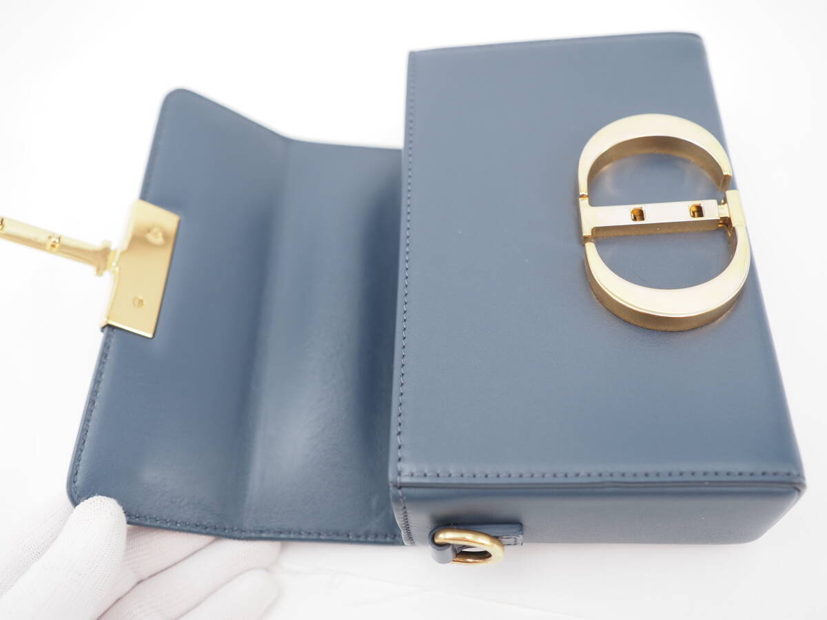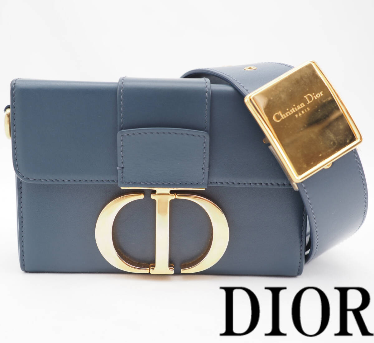 早い者勝ち 美品 Dior ディオール モンテーニュ30 ショルダーバッグ ディープブルー系 レザー ゴールド金具