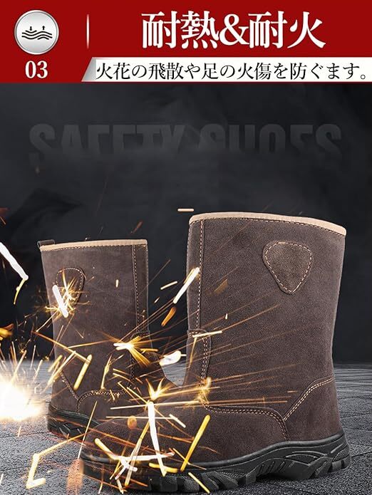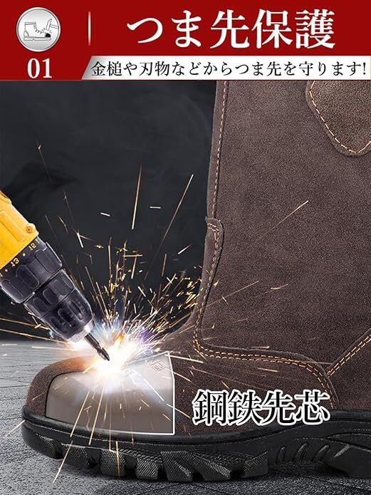 安全靴 作業ブーツ 溶接用 安全長靴 ハイカット 耐水 耐火 軽量 鋼鉄先芯入り 耐油 耐滑 耐摩耗 サイズ:28cm