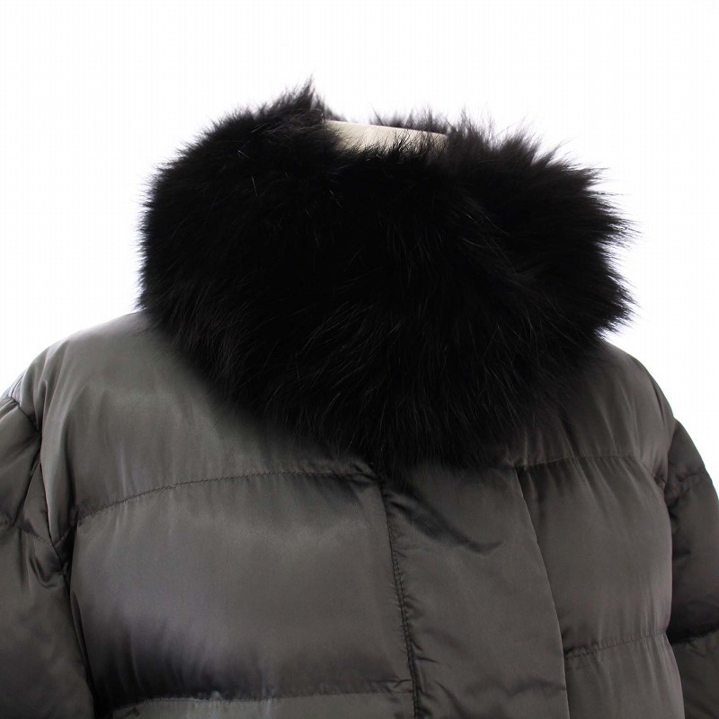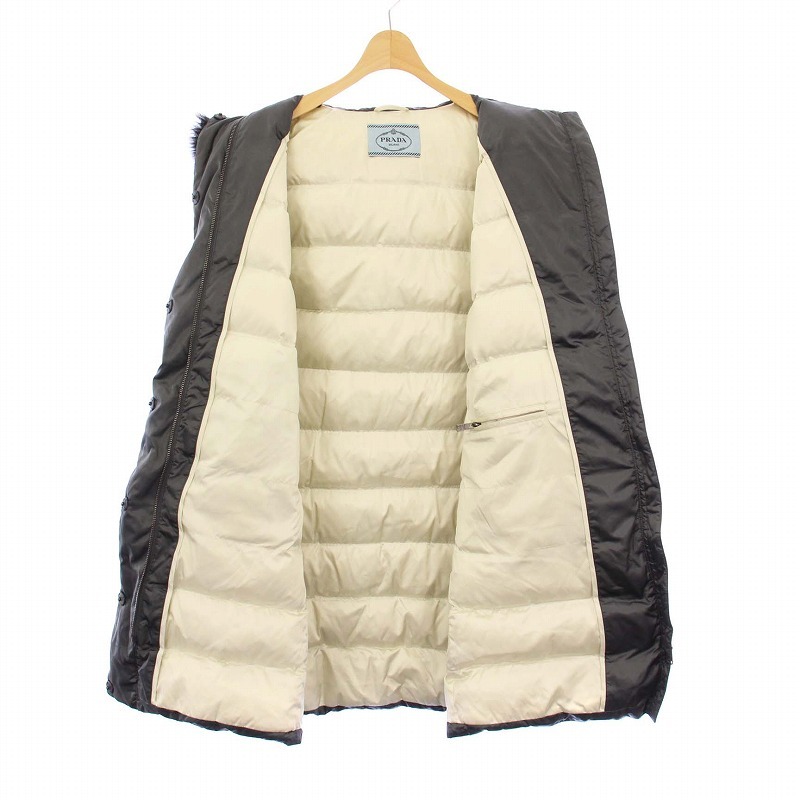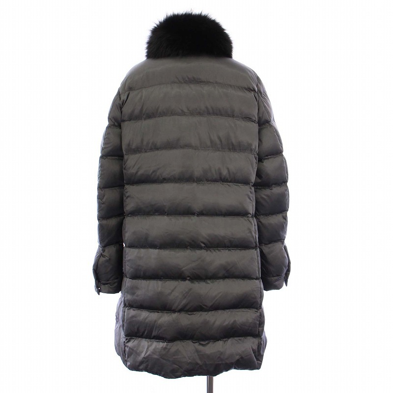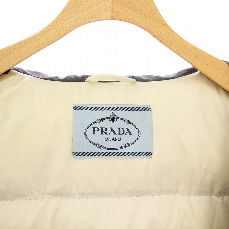 プラダ PRADA ダウンコート アウター ロング ファー 46 グレー /KH レディース