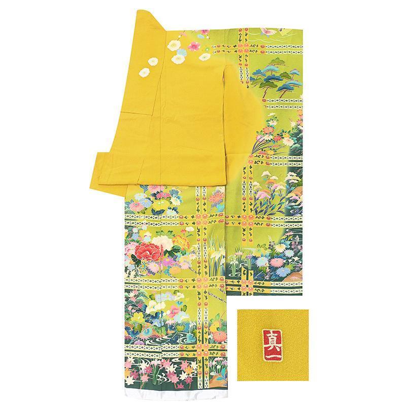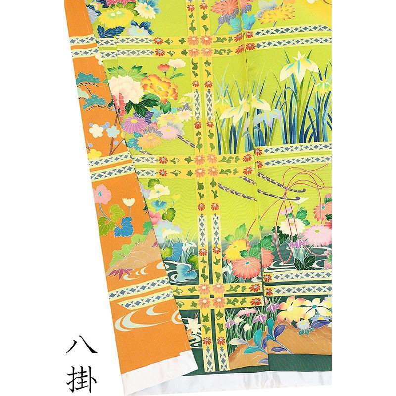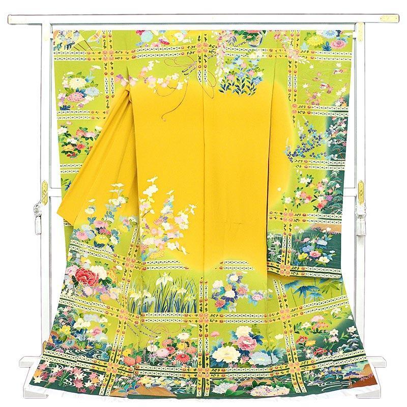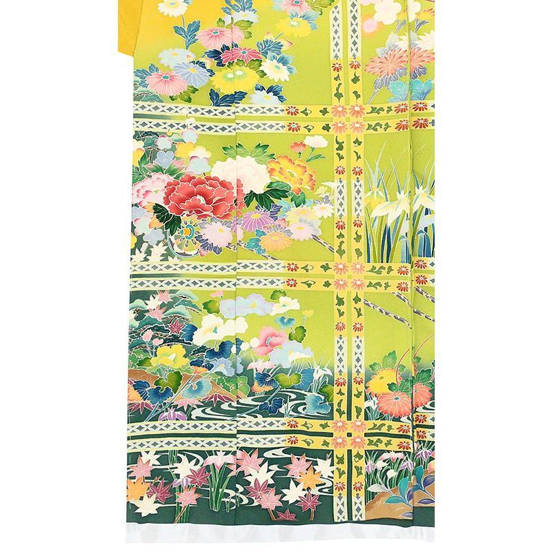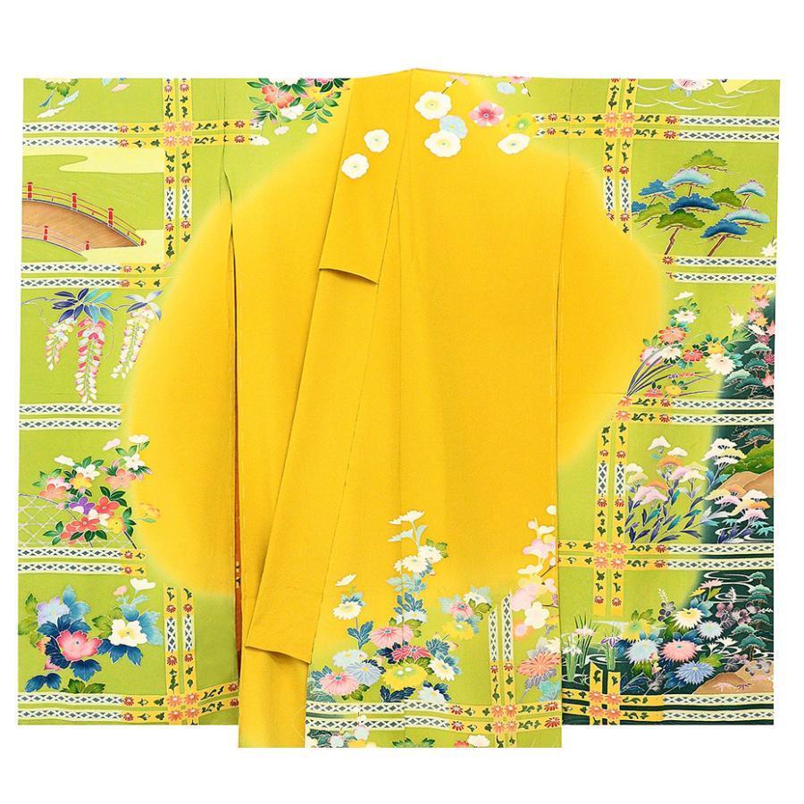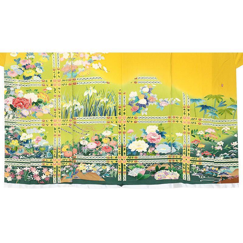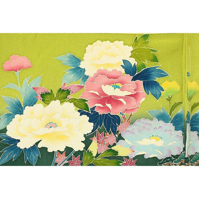★品質・詳細 | ○地色 【こちらの地色は古典の黄緑x黄(明るい辛子)色系です。】 ○絹織物 ○新品・未仕立の特撰振袖の仮絵羽です。 ○参考上代 980,000円 |
