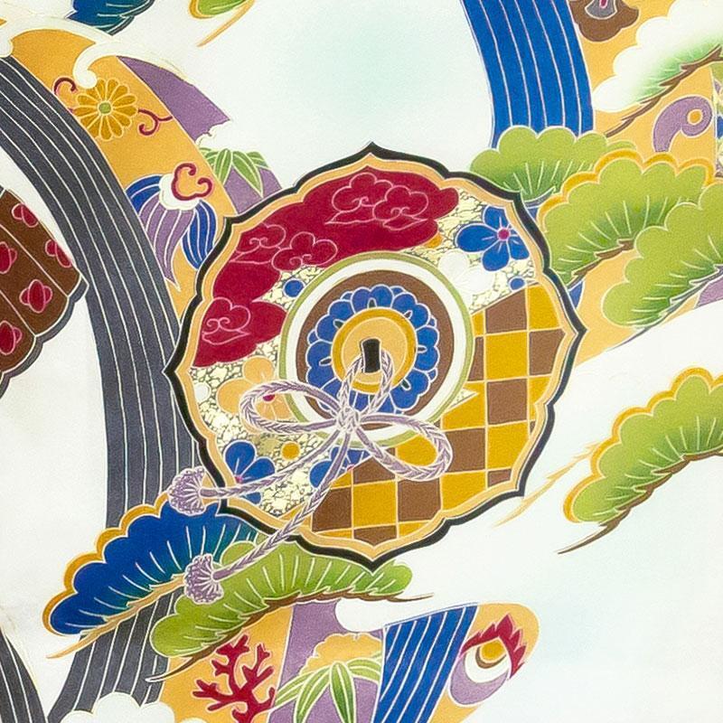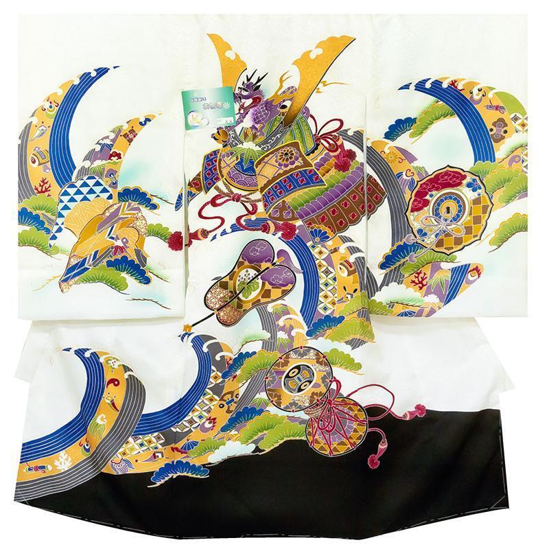 ★商品説明 | ■大将龍兜をメインに縁起の良い大王松や波文で描いたお宮参り産着(お祝着)です。 ■格調高い兜を中心に豪華な特撰京友禅仕様です。 ■下着(長襦袢)もセットで付いており、前身ごろに紐もついているので、そのままご利用いただけます。 ■お祝い箱にサービスでお入れしてお届けします。 |