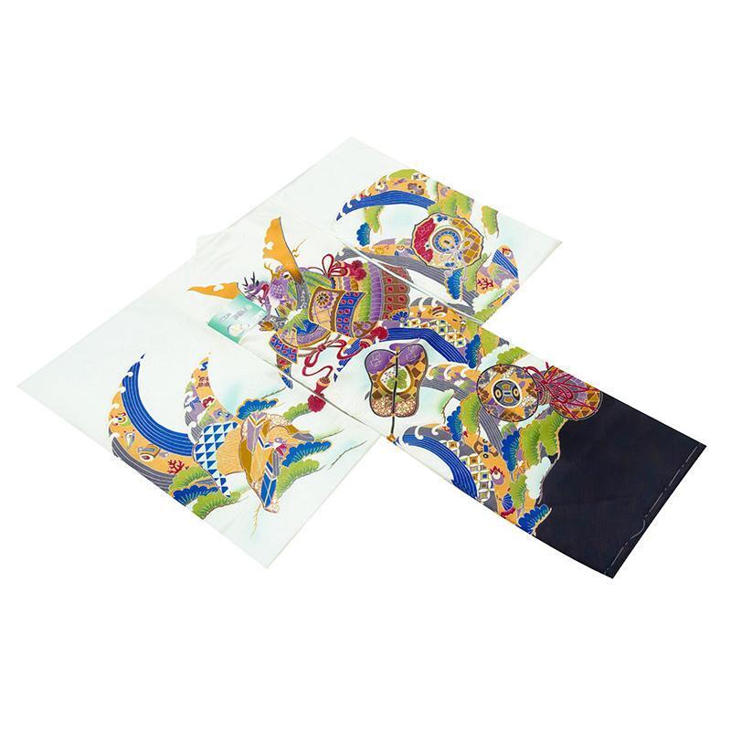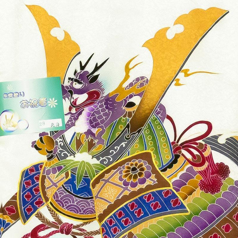 ※記念感謝祭☆京都友禅、刺繍、金彩仕様☆大将龍兜に祝いの古典工芸文白黒地☆お祝着 |