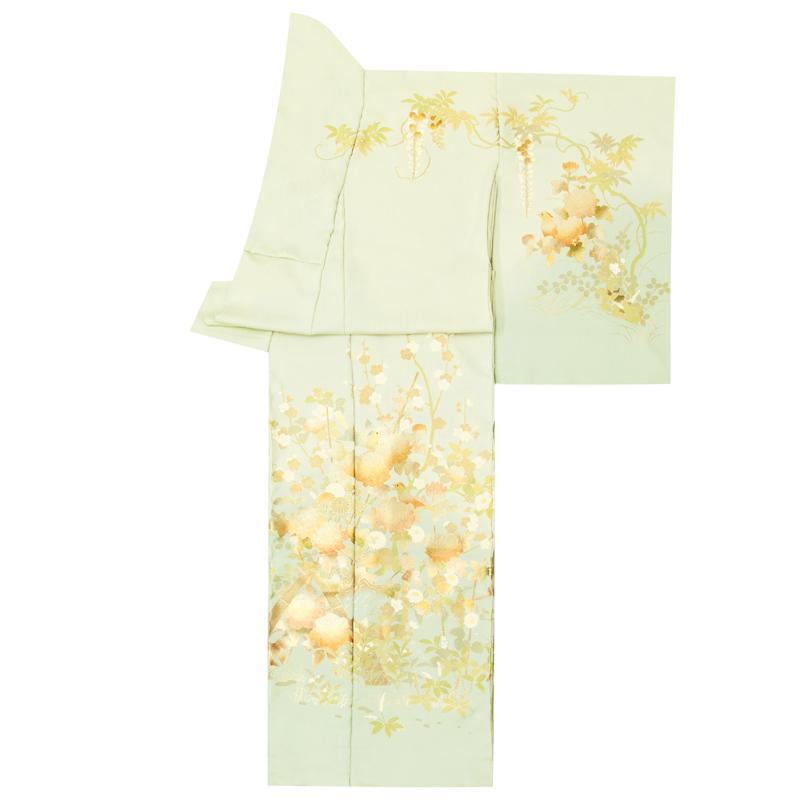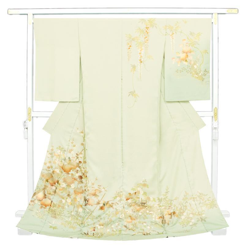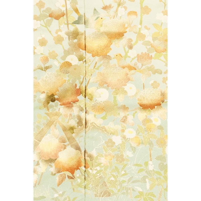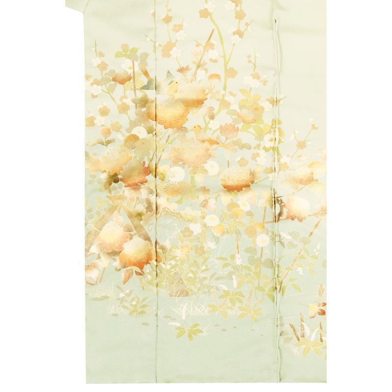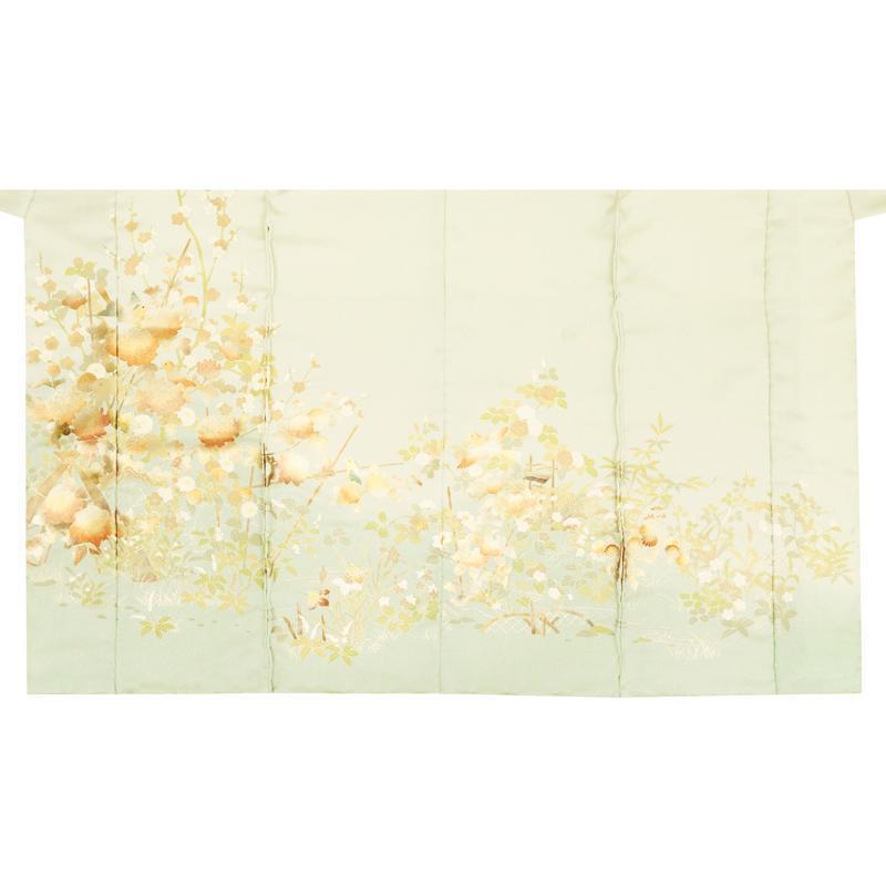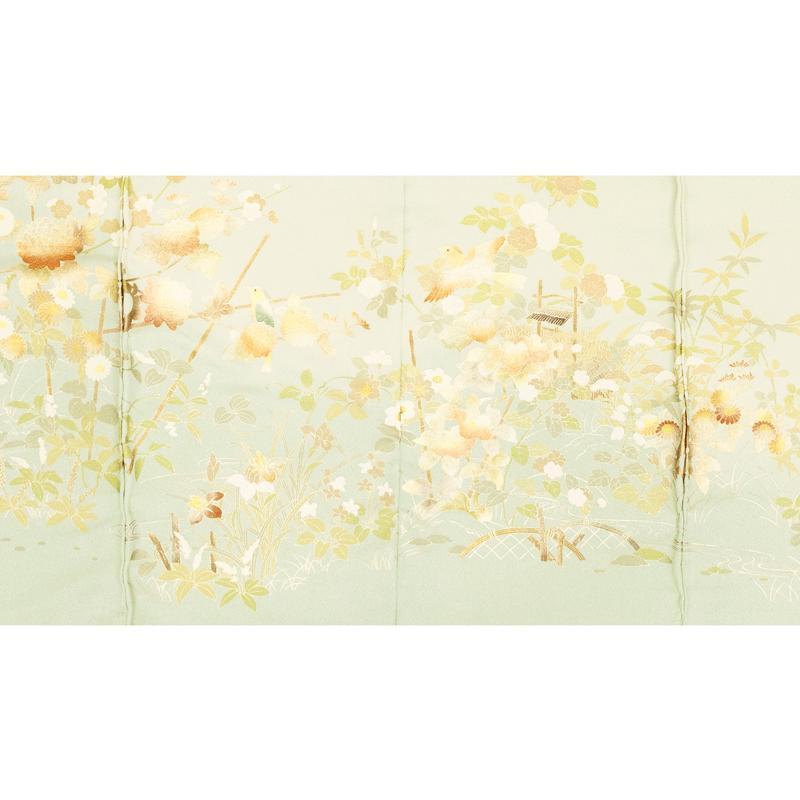 | ★品質・詳細 | ○地色 【こちらの地色はうす白緑色系です。】 ○絹織物 ○新品・未仕立の逸品訪問着の仮絵羽です。 ○最高級ちりめん生地使用 ○参考上代 580,000円 |