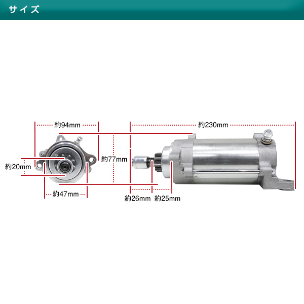 始動力を高め、エンジンへの負担を最小限に抑える高性能スターターです。