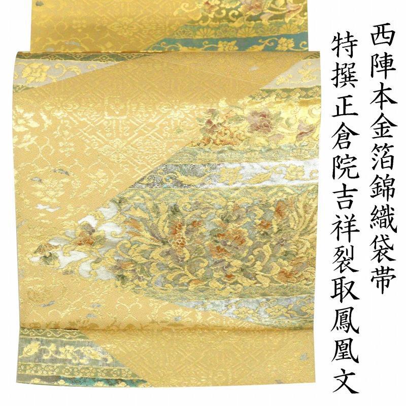 | ※記念感謝祭【仕立無料】西陣工芸本金虹箔錦織袋帯☆正倉院吉祥裂取鳳凰文☆名門細尾取扱品 |