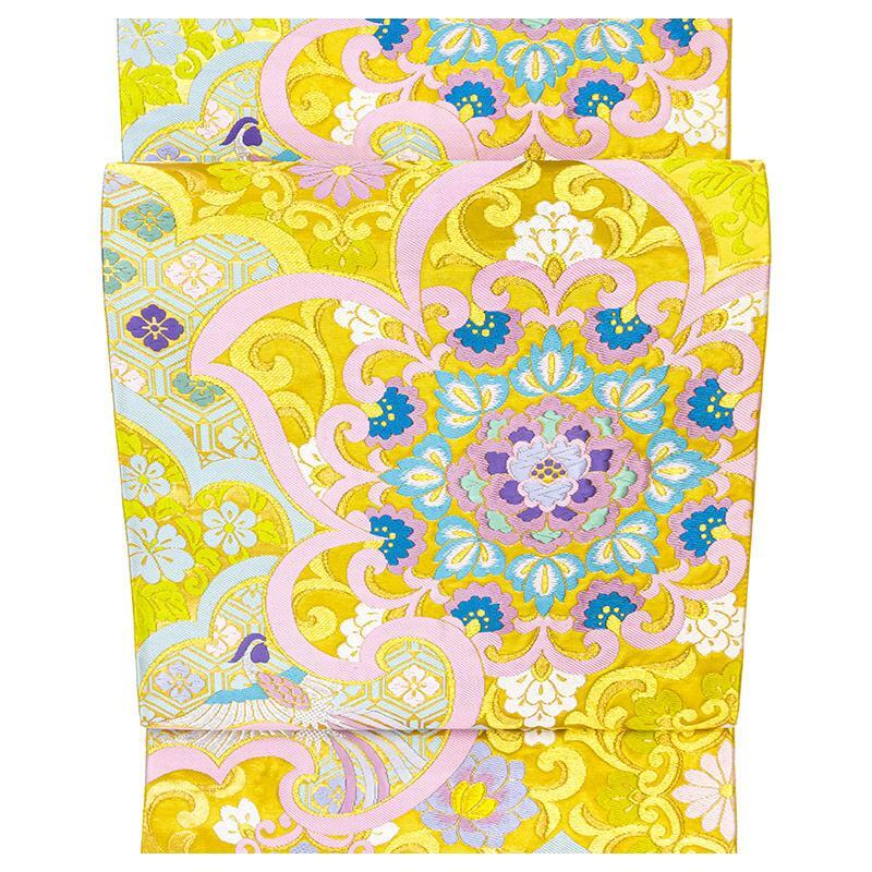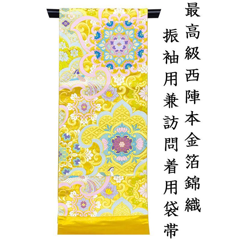 | ※記念感謝祭【仕立無料】京都名門高島織物謹製☆最高級本金箔錦織吉祥華文振袖用袋帯、訪問着兼用 |