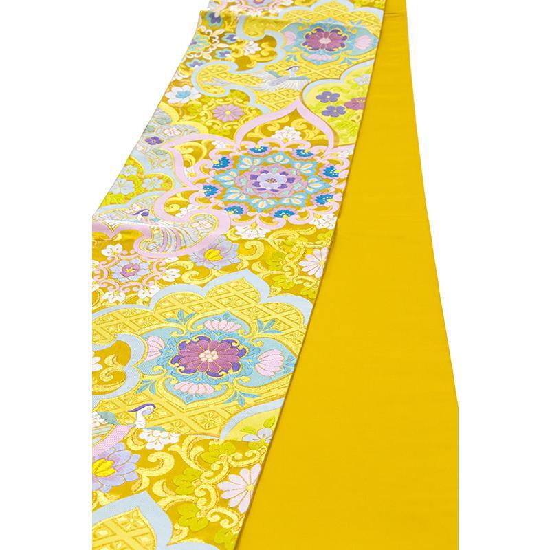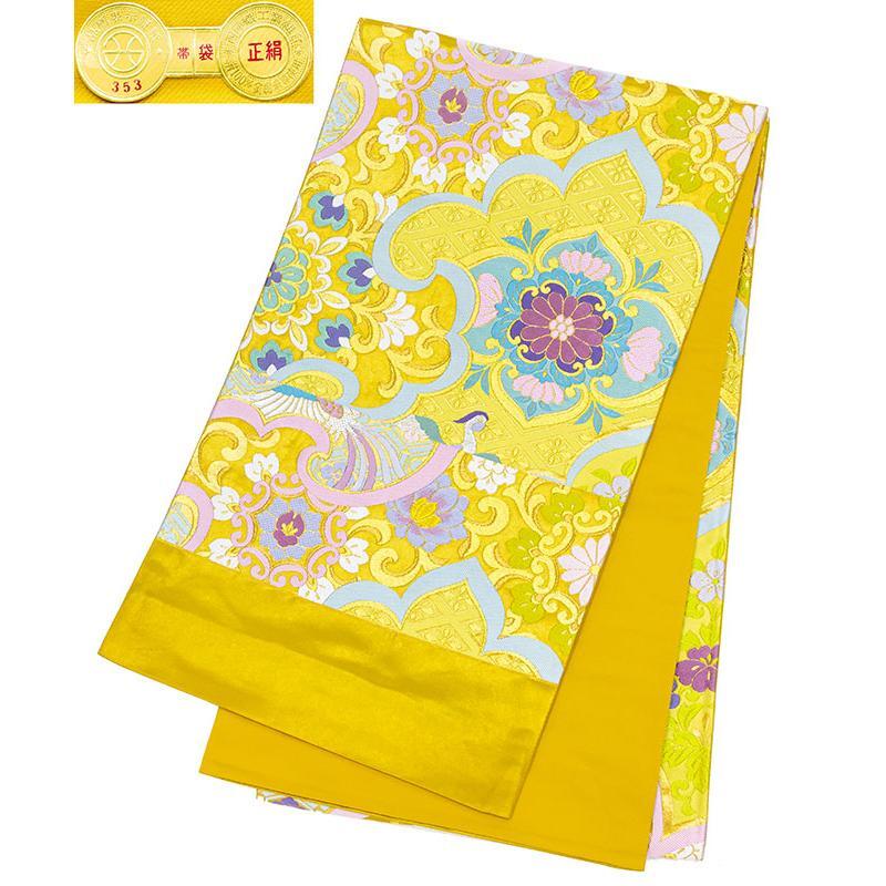 | ★品質・詳細 | ○地色 【こちらの地色は金色系です。】 ○絹織物 ○新品・未仕立の振袖用兼訪問着用袋帯です。 ○西陣名門高島織物謹製 【証紙番号 353】 ○長さ 約4.30m ○参考上代 230,000円 |