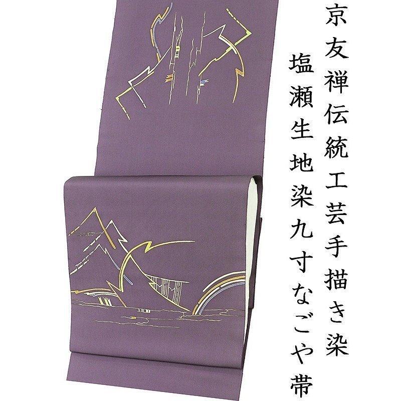 | ※記念感謝祭【仕立無料】京友禅伝統工芸手描き染、本金加工、手刺繍☆特撰塩瀬生地使用玲宝遠山図染九寸なごや帯 |