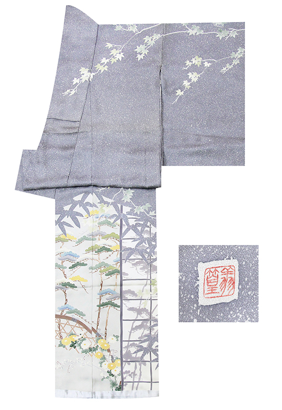 | ★品質・詳細 | ○地色 【こちらの地色は蒔糊ローケツ染で白味の灰地系です。】 ○絹織物 ○新品・未仕立の逸品訪問着の仮絵羽です。 ○最高級ちりめん生地使用 ○参考上代 780,000円 |