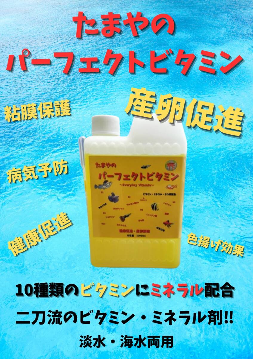 たまやのパーフェクトビタミンは観賞魚を「健康」に育てることにこだわったビタミン・ミネラル溶液です。