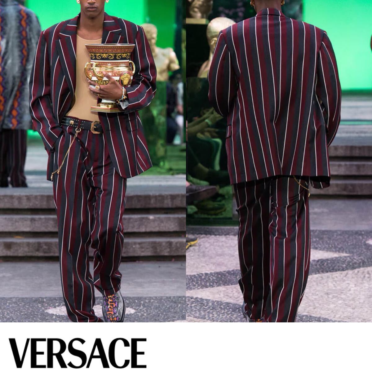 コレクションにも登場したVersaceのレジメンタル ストライプ ジャケットです。