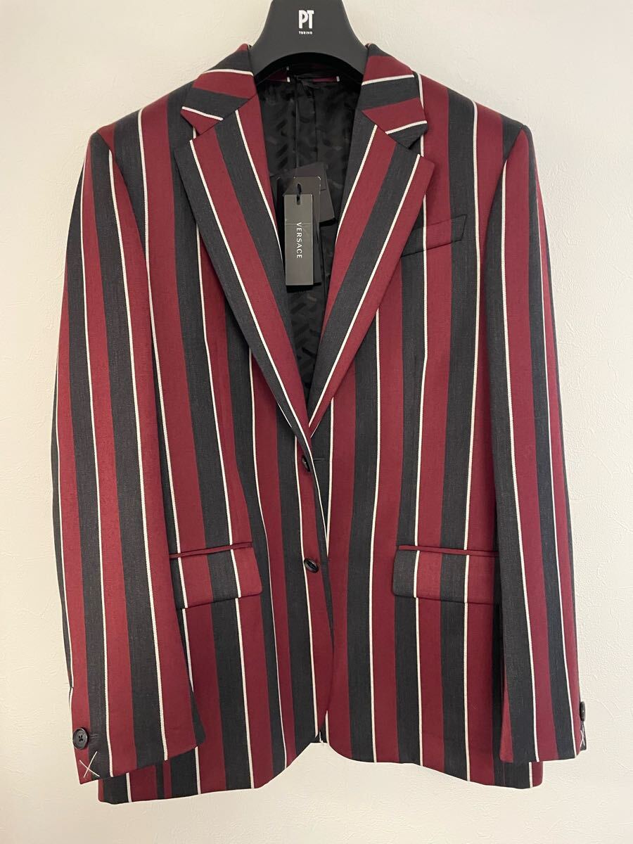 VERSACE ヴェルサーチェ新品 レジメンタル ストライプ ジャケット スクールジャケット 46