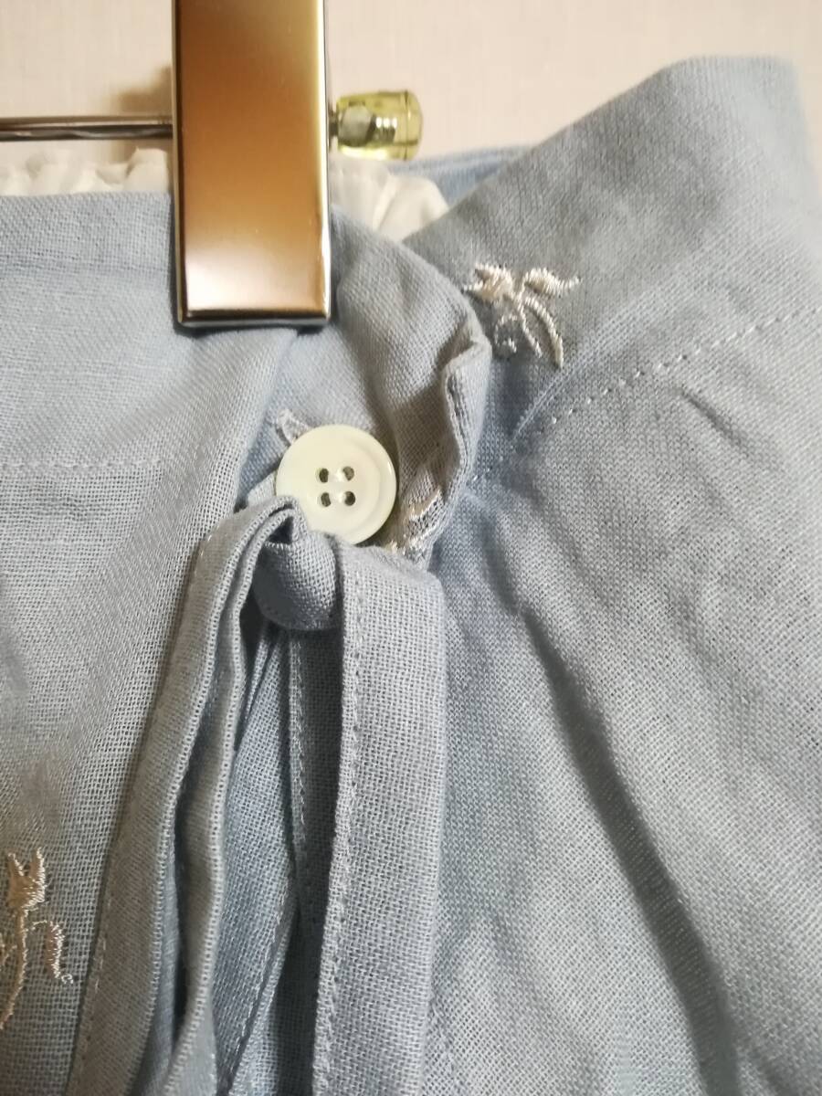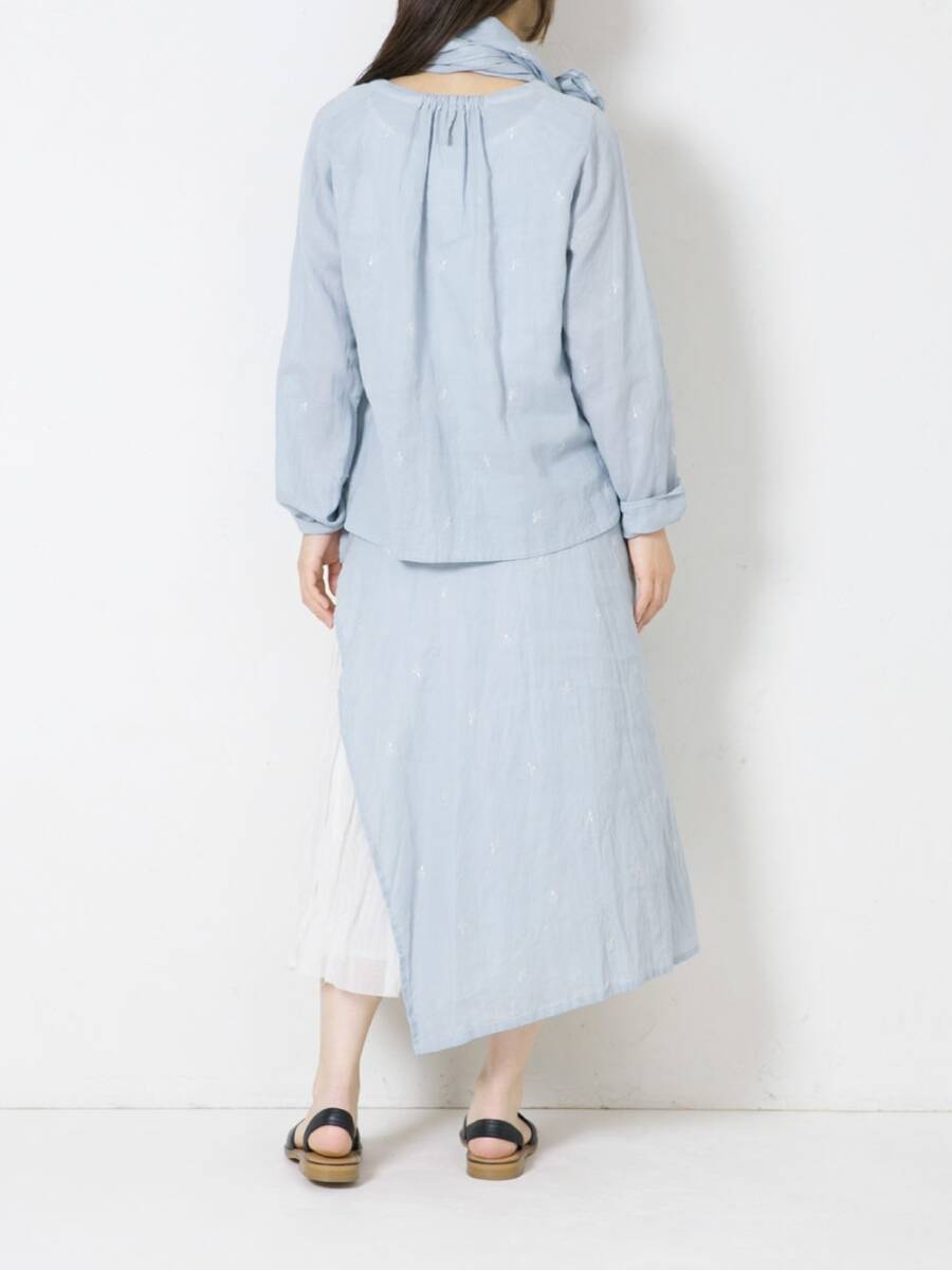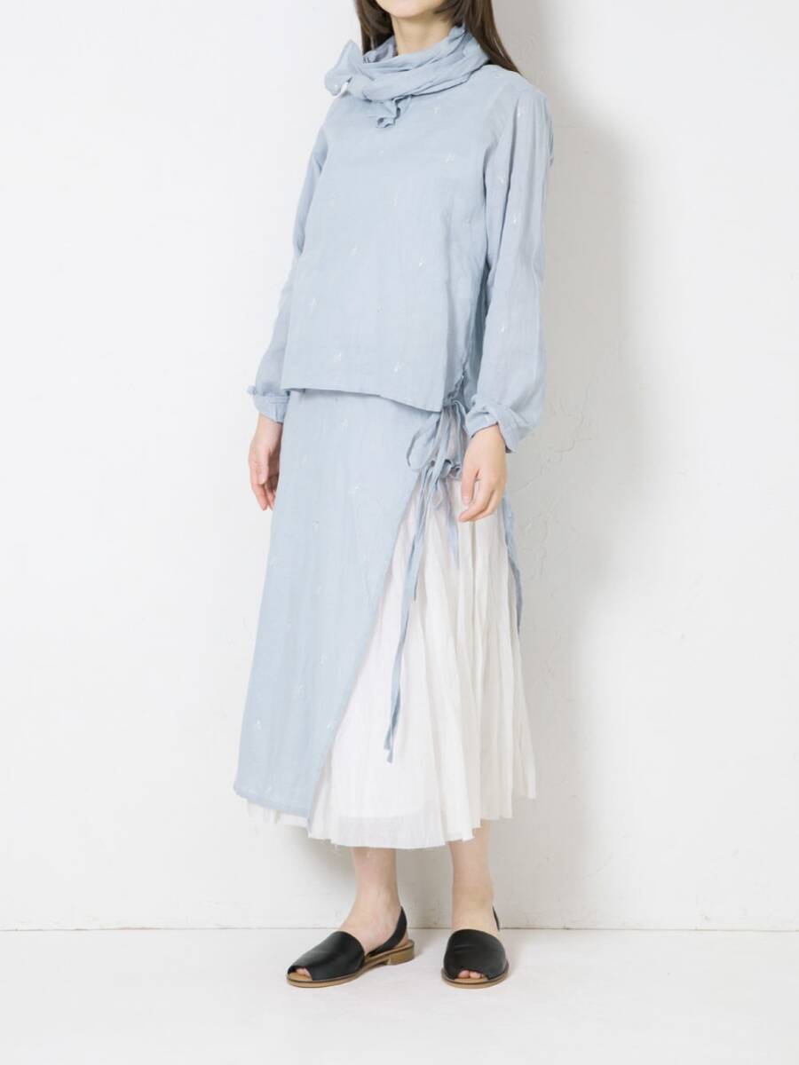 Vlas Blomme 今期25SS Flower Embroidery タブリエ & レイヤードスカート コットン ブルー