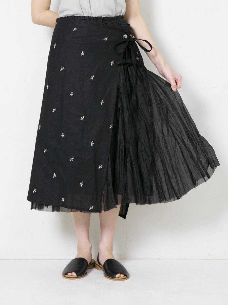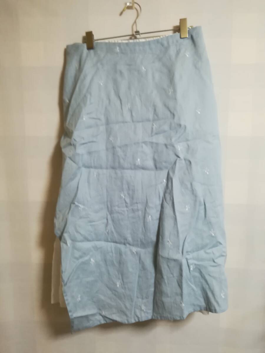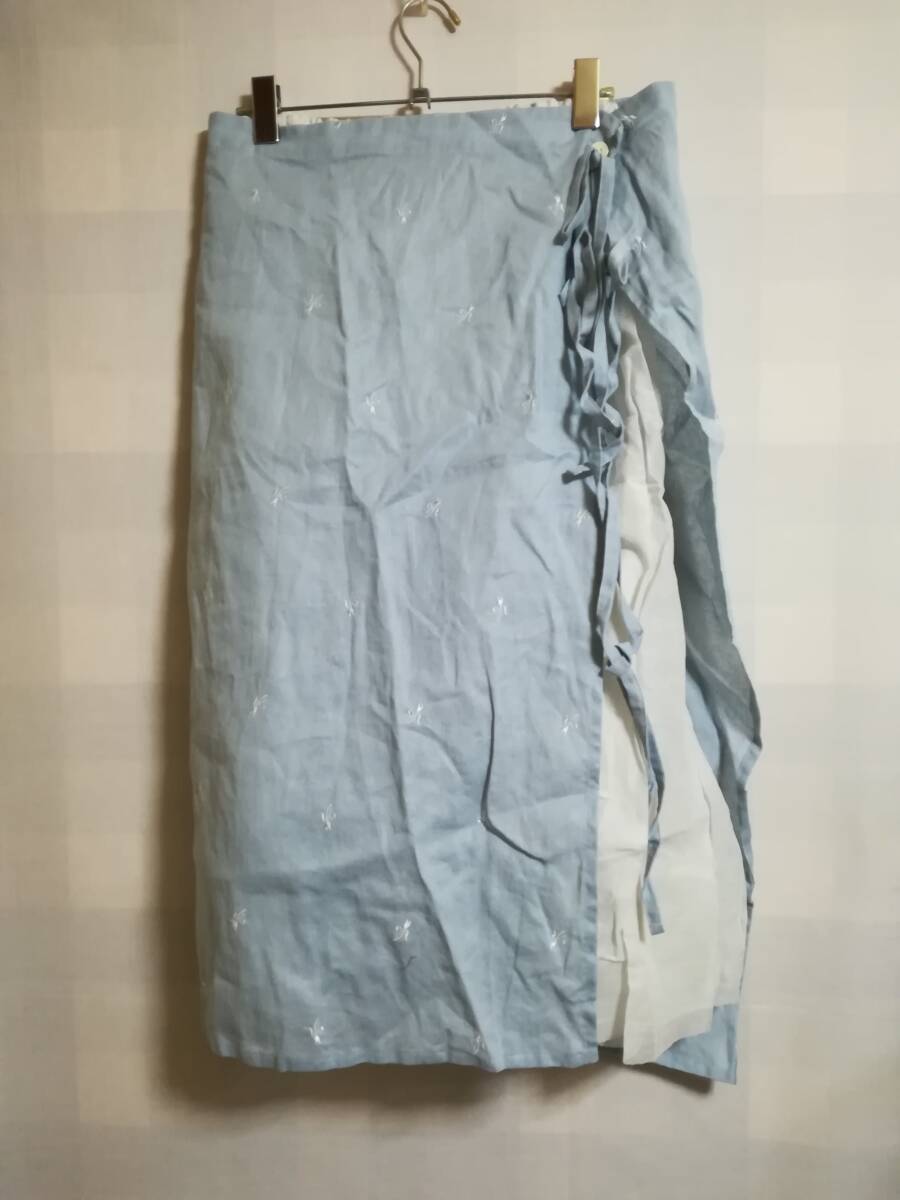 Vlas Blomme 今期25SS Flower Embroidery タブリエ & レイヤードスカート コットン ブルー