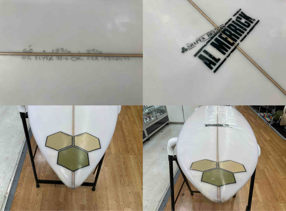 | 付属品は画像のものが全てです。 【状態】 デッキ、フットマークあり。 ボトム、ディンプルあり。 レールその他、ボード全体にあて傷、擦り傷、リペア跡あり。 テールエンドがクラッシュのため、リペア必要。 状態画像にてご確認ください。 メーカー:Channel Islands シェイパー:AL MERRICK モデル:OG FLYER スペック:6'0" - 19 3/4 - 2 9/16 ※ボード記載サイズより引用 フィンシステム:Futures / tri |
