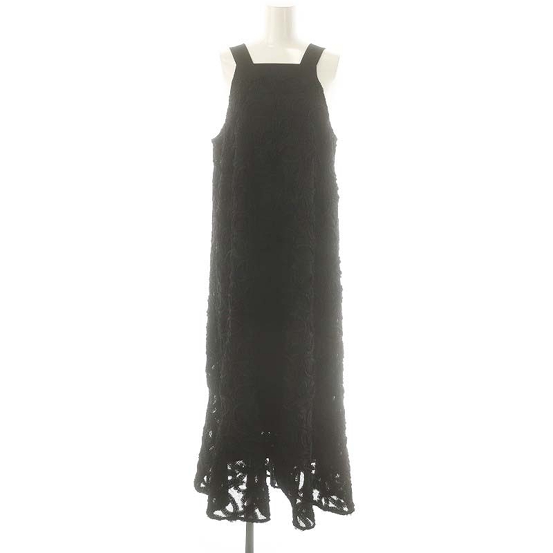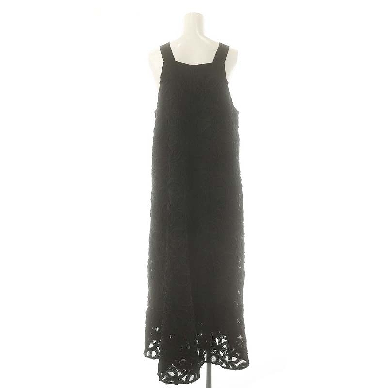 グレースコンチネンタル GRACE CONTINENTAL 25SS テープ刺繍メッシュワンピース ロング ノースリーブ 36 ブラック /HK ■OS レディース