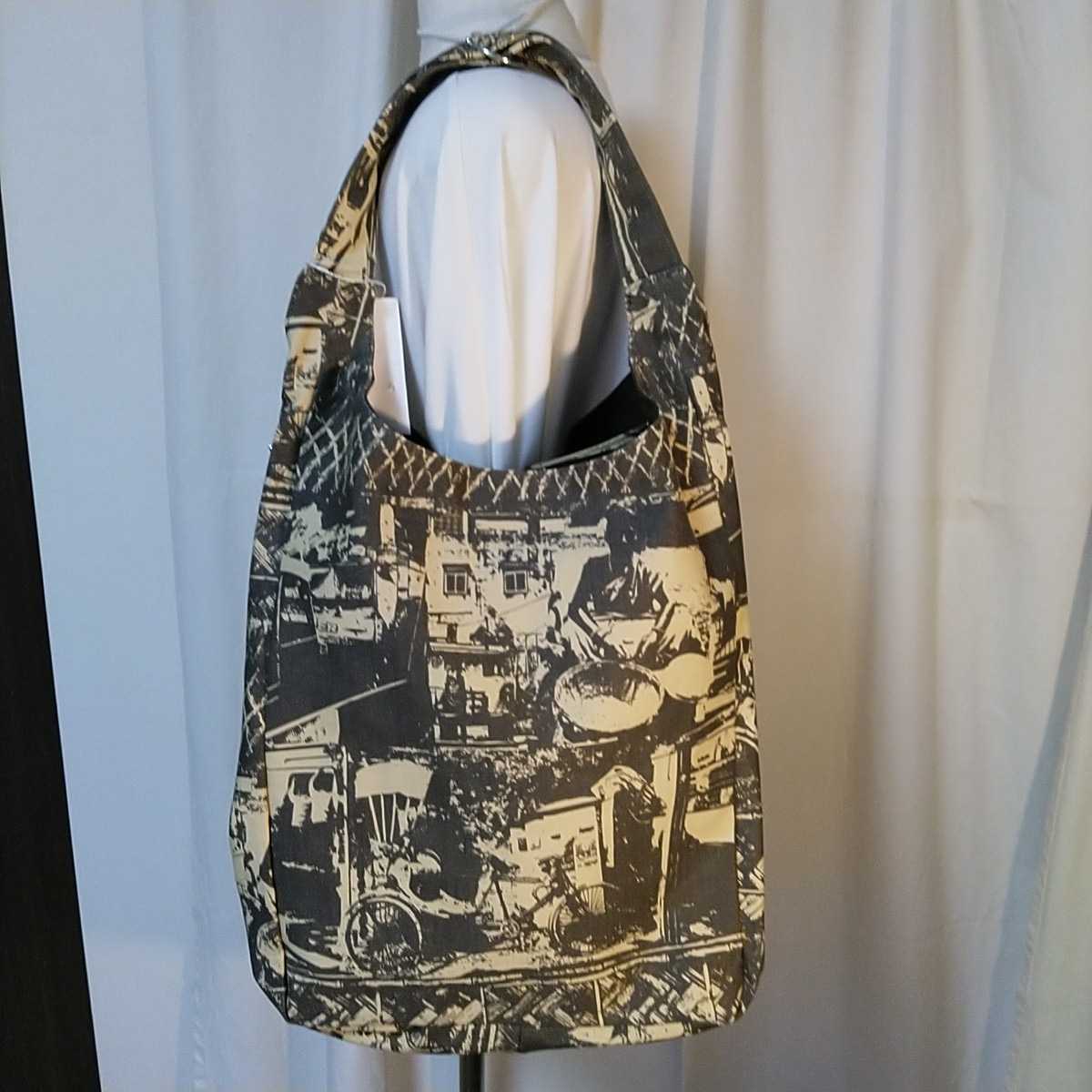 高品質 フェアトレード キャンバス 綿100% 大きいバッグ 高級感 ハンティングワールドの工場 コルカタの街 グレープリント  6490円が1500円