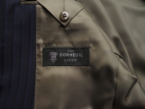 AMFステッチ、毛芯を用いた縫製など、百貨店向けならではの上級仕立てで仕上げられております。ファブリックは斜紋線のしっかりした英国ドーメル社のウール100% ROYALツイル生地を使用しています。ドーメル・コレクションの中でロンドンのサヴィルロウの仕立て屋さんに最も愛されているという打ち込みのしっかりとした生地が特徴的。特有のドレーブと艶感で一目で上質な生地であることが分かります。
