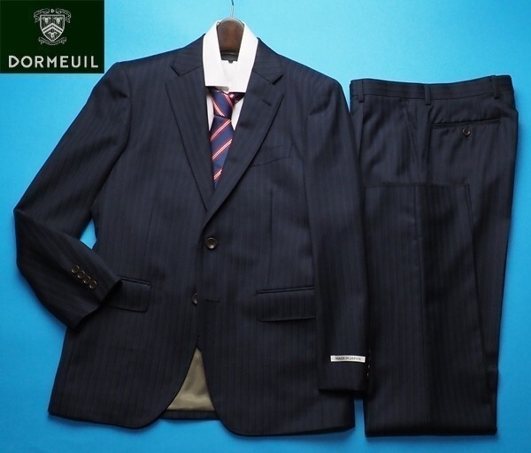 新品11.8万円 大手百貨店扱い 日本製 秋冬『DORMEUIL ドーメル 英国製生地』ウール100% 艶感 ロイヤルツイル スーツAB7濃紺(NV) 6941-2p