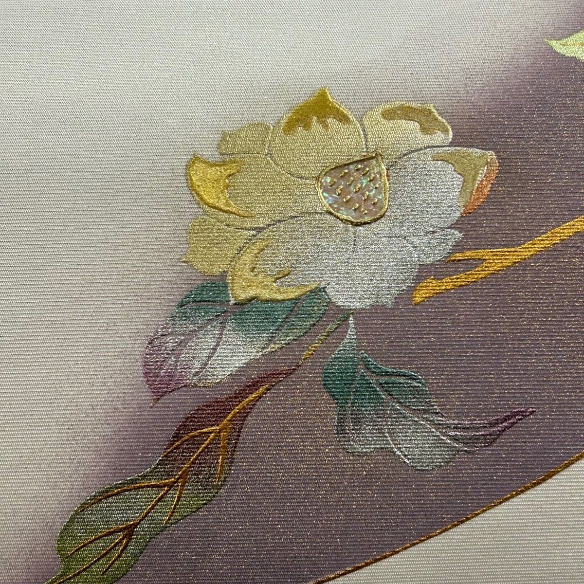 | 名古屋帯 美品 秀品 枝花 幾何学模様 螺鈿 金銀彩 クリーム 正絹 【中古】 |
