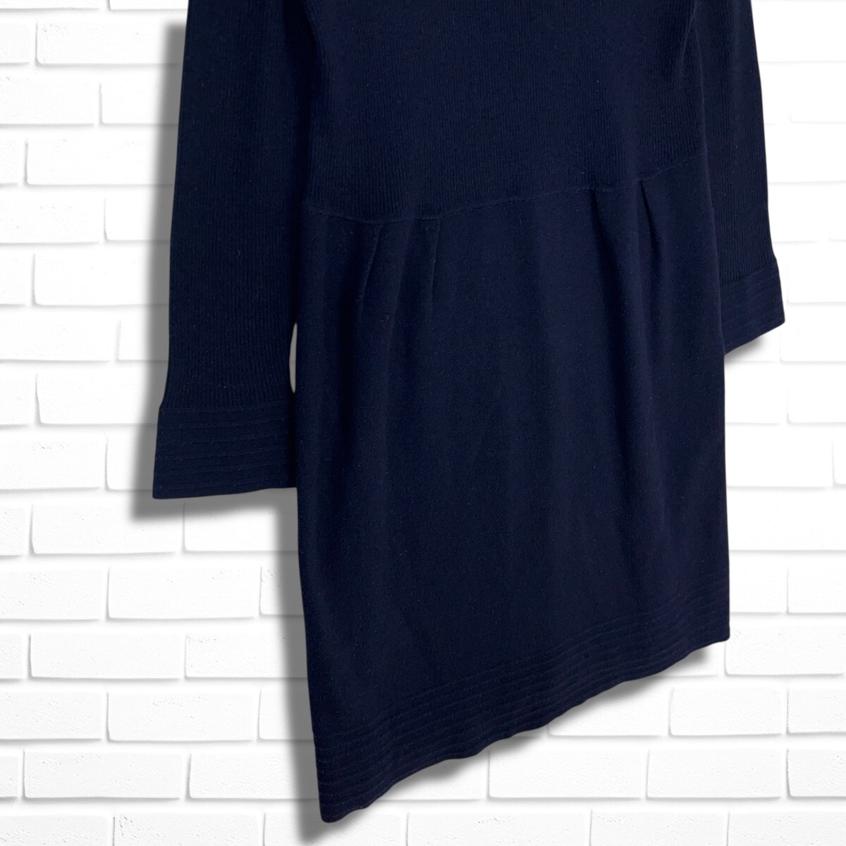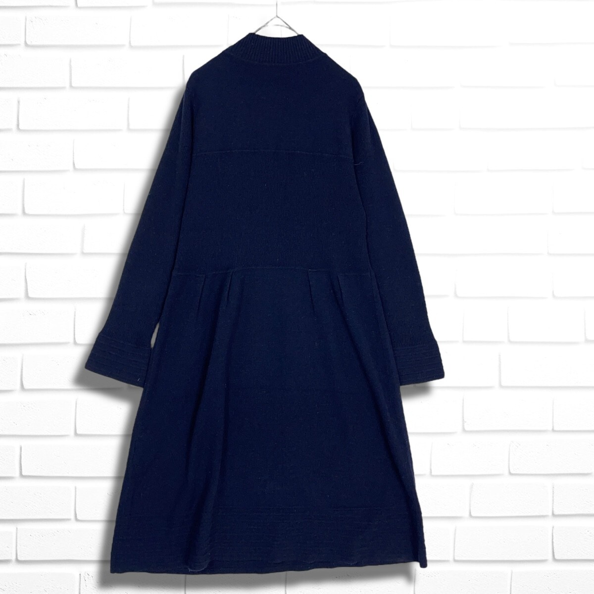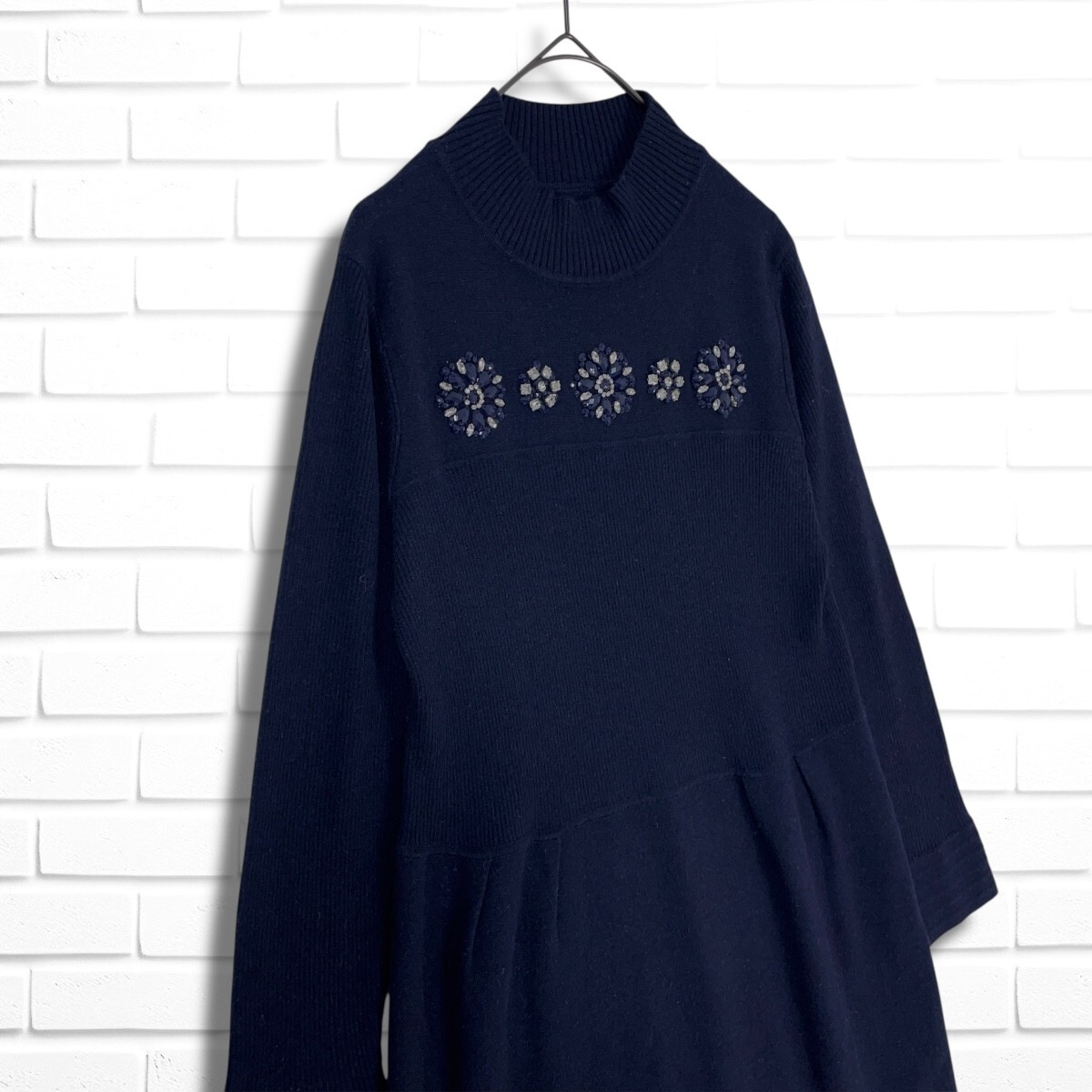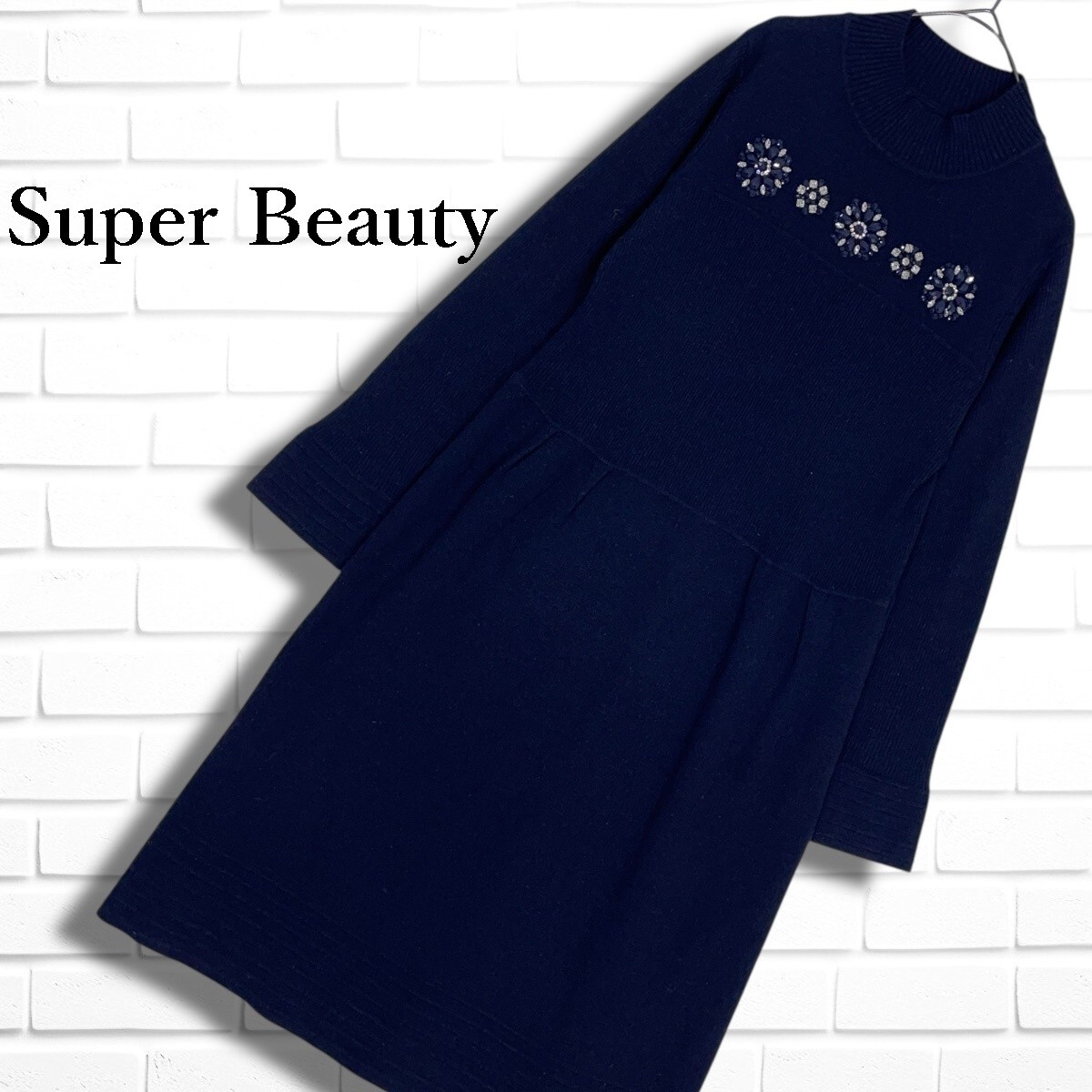 ◆良品◆ Super Beauty スーパービューティー ビジュー 装飾 長袖 ニット ワンピース 紺 ネイビー レディース 40 ◆送料無料◆ 5325E◇