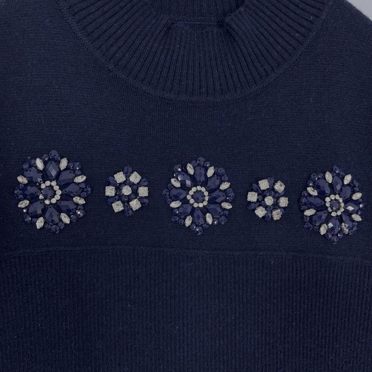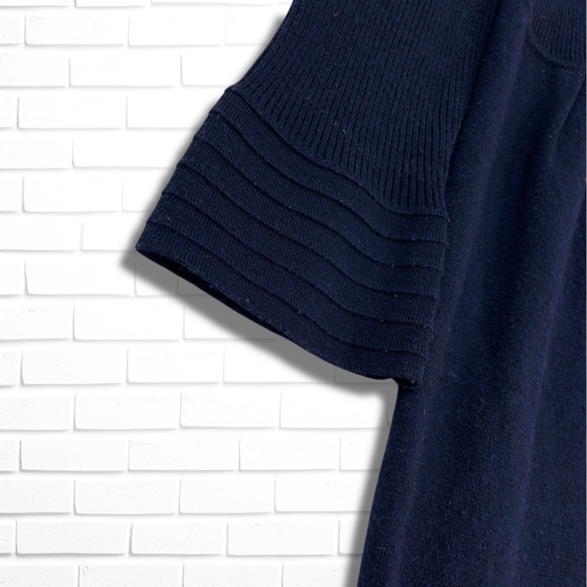◆良品◆ Super Beauty スーパービューティー ビジュー 装飾 長袖 ニット ワンピース 紺 ネイビー レディース 40  ◆送料無料◆ 5325E◇