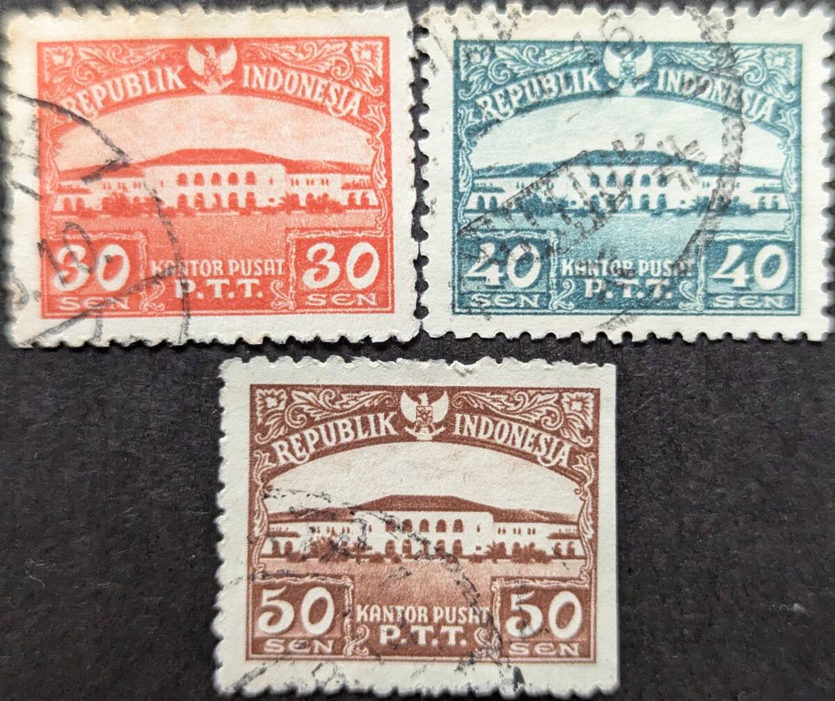 【外国切手】 インドネシア 1953年 発行 バンドン郵便局 消印付き