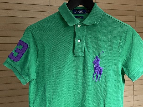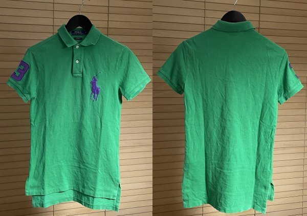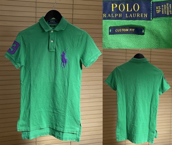 ★国内正規品 POLO RALPH LAUREN ポロ ラルフローレン CUSTOM FIT カスタム フィット ビッグポニー 刺繍 ポロシャツ XS 半袖 グリーン系