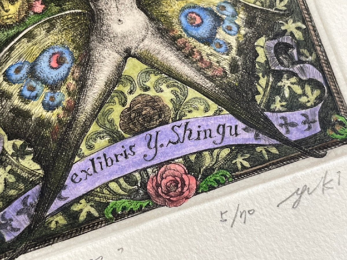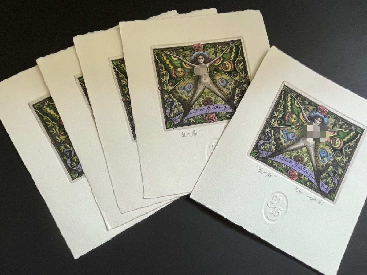 ■美品 林由紀子 夏の扉 彩色 5葉枚 書票 署名入 エクスリブリス ★