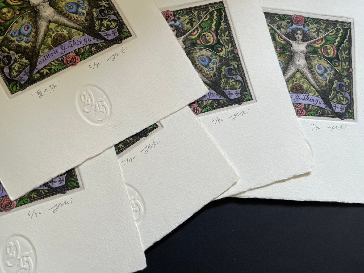 こちらは■美品 林由紀子 夏の扉 彩色 5葉枚 書票 署名入 エクスリブリス★