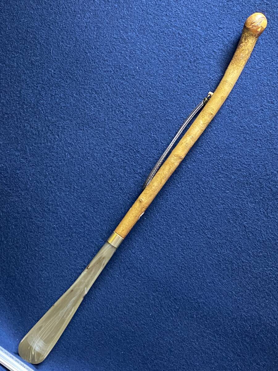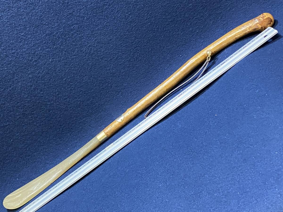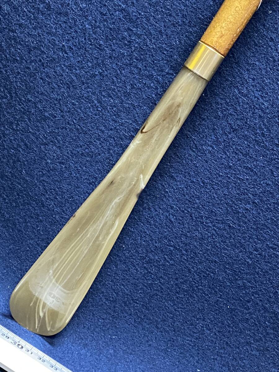 Oerre Fritz MADE IN ITALY イタリー製 長 靴ベラ 革紐 付き くつべら 天然木 水牛の角 加工の様な感じ 中古 美品 珍品 靴 関係品 海外製品
