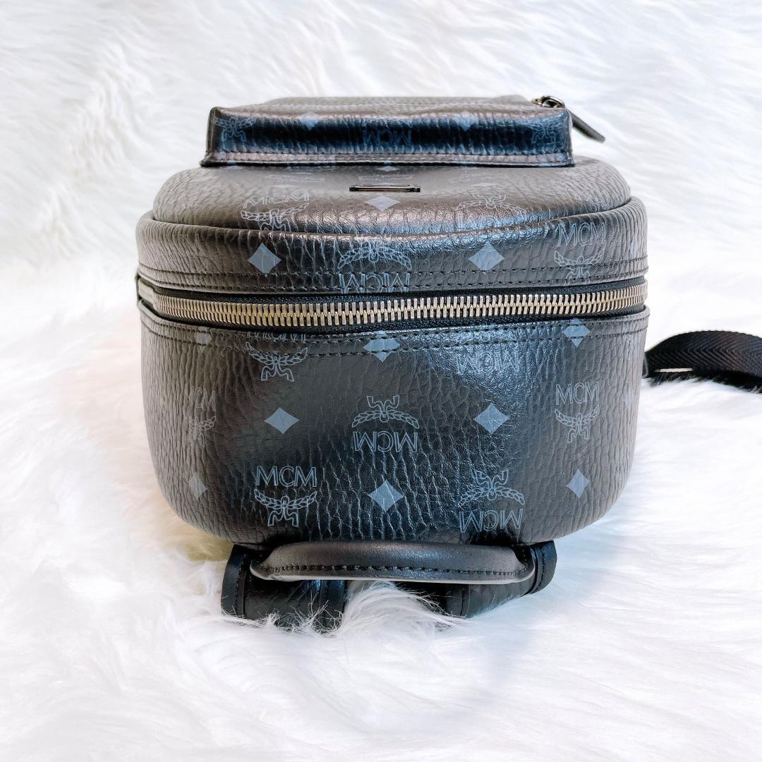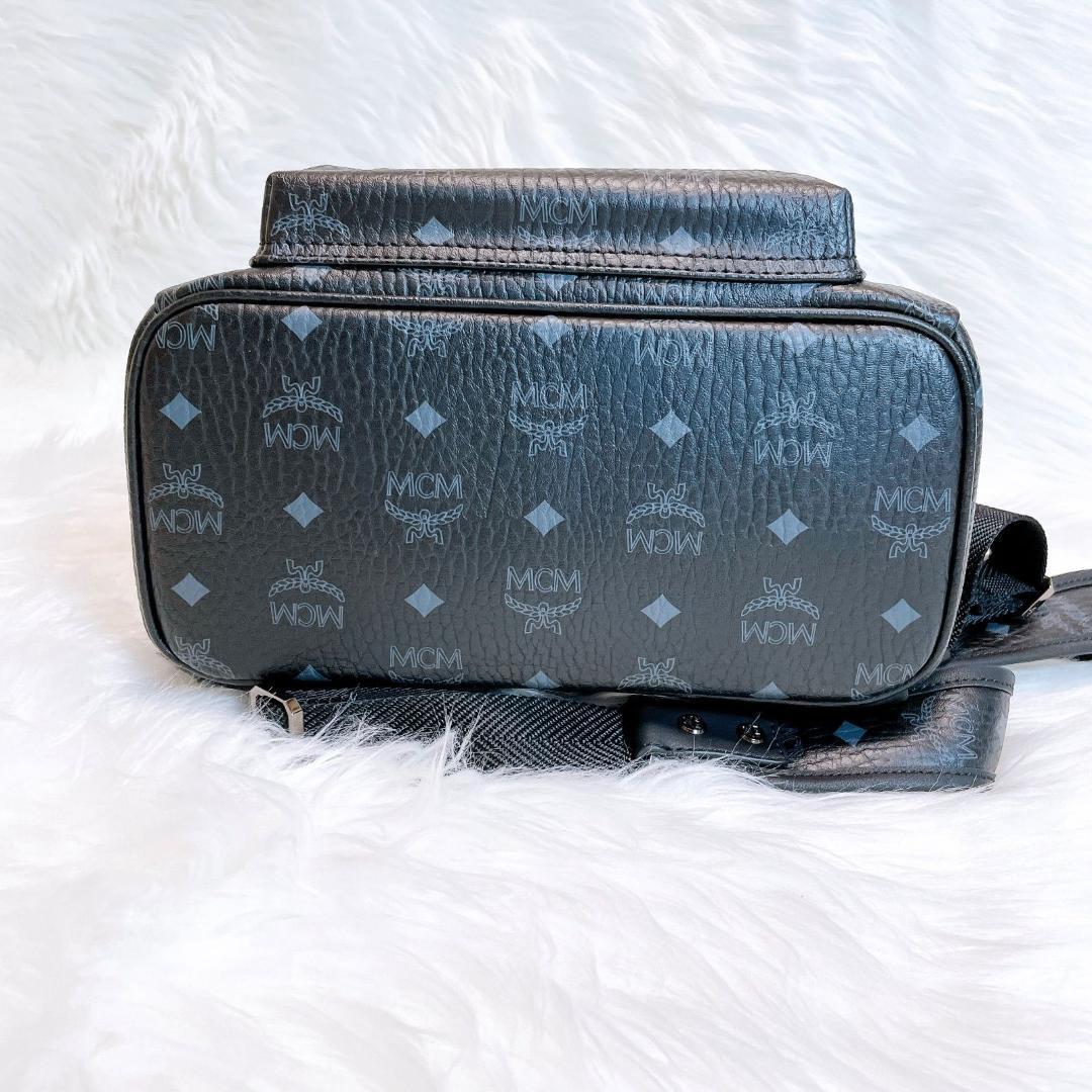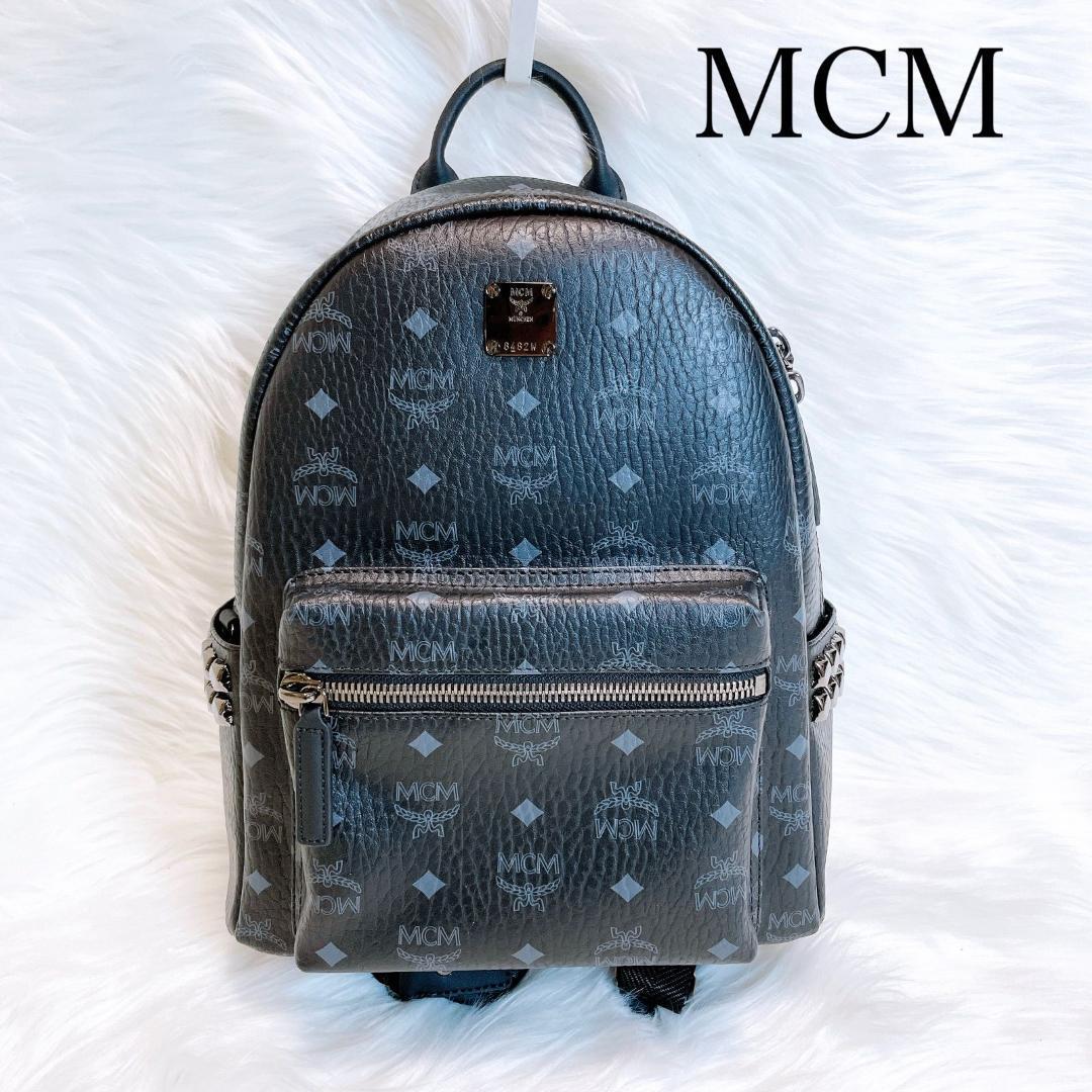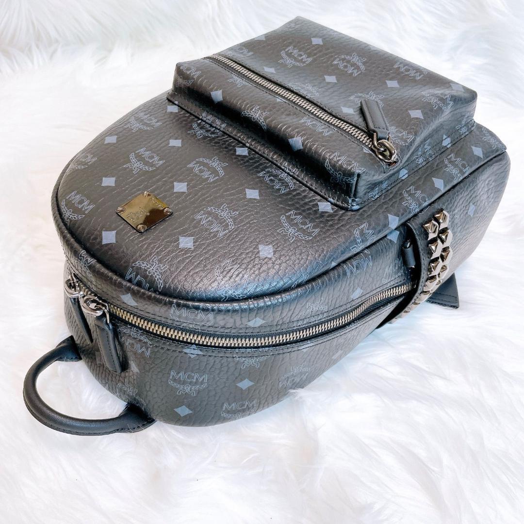MCM エムシーエム リュック スタッズ ロゴプレート レザー ブラック M モノグラム