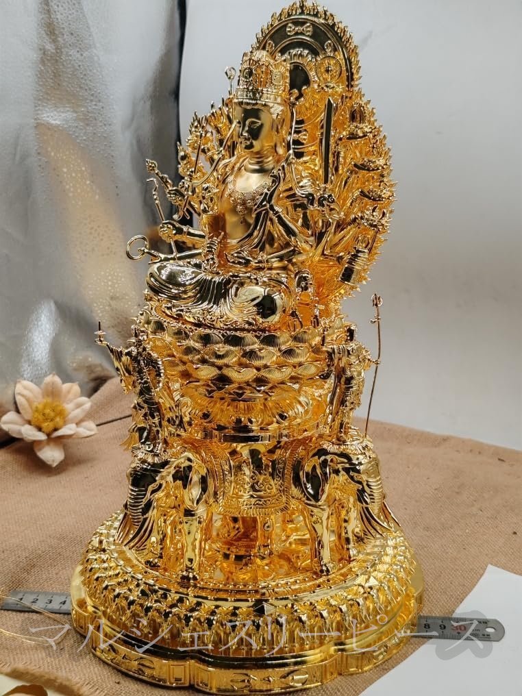 仏像 普賢延命菩薩 座像 真鍮 四天王 四象乗り円台 総高39cm