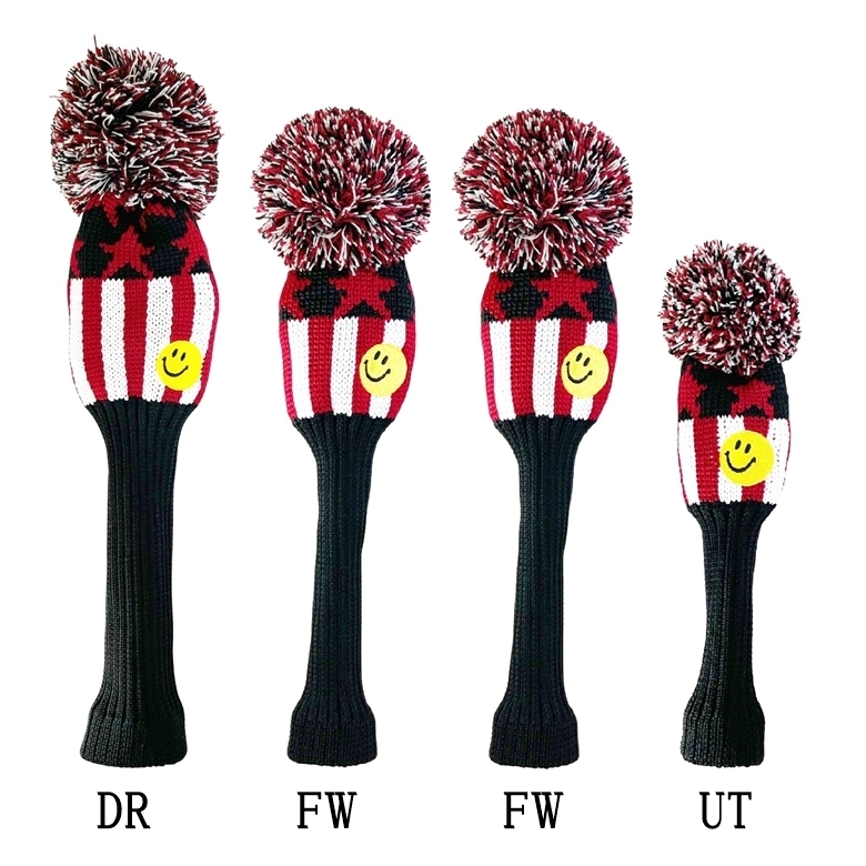 ☆オークション♪4P:BKブルーティーゴルフ【ブラック: USA FLAG Ver2: SM】4本セット ニットヘッドカバー HC-USA2 送料無料