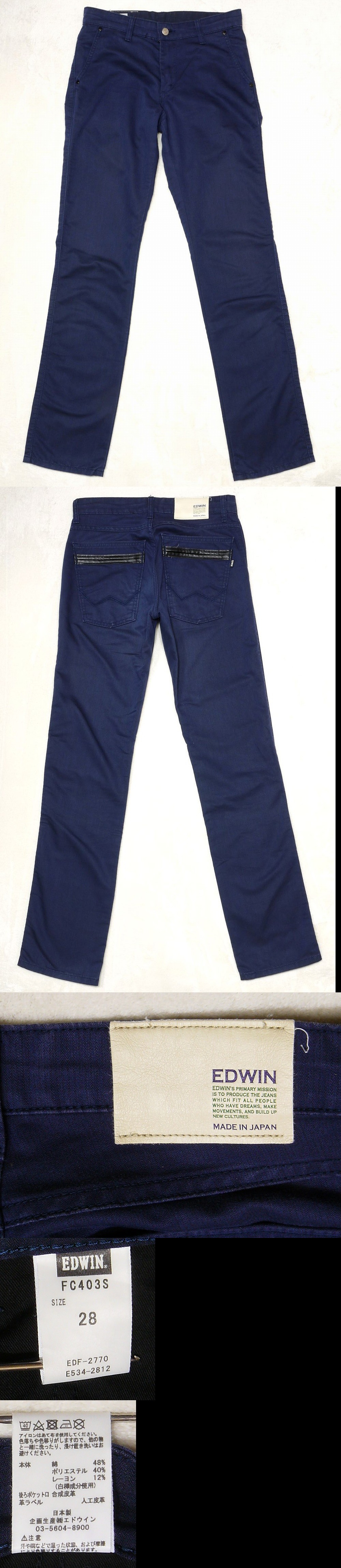 ☆EDWIN エドウィン FC403S メンズ パンツ ボトムス ストレート W28 実寸W75センチ 股下82センチ 薄いストライプ 紺