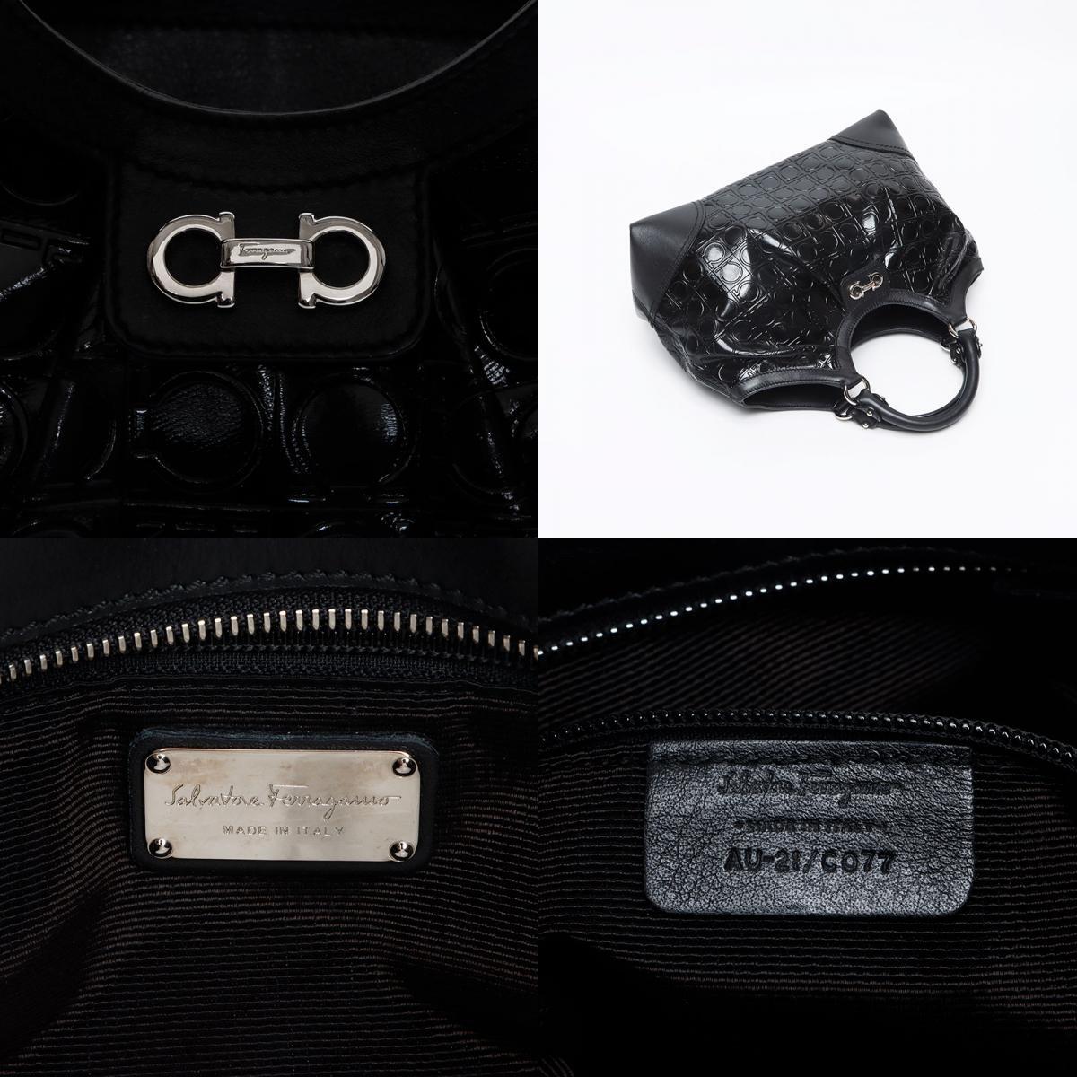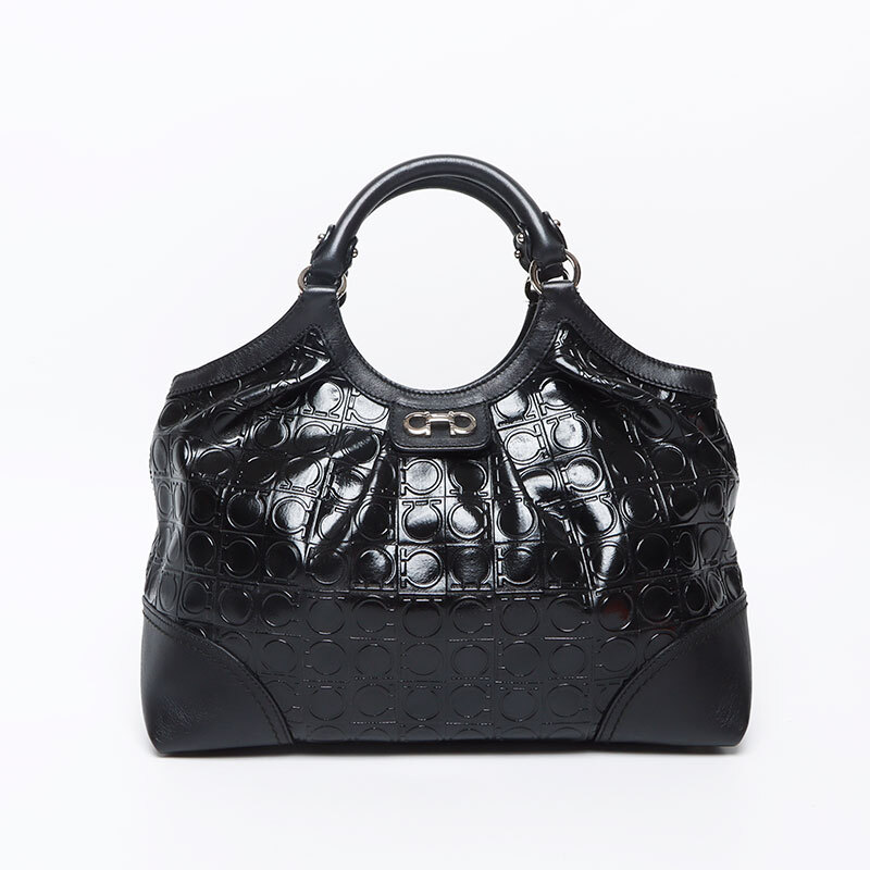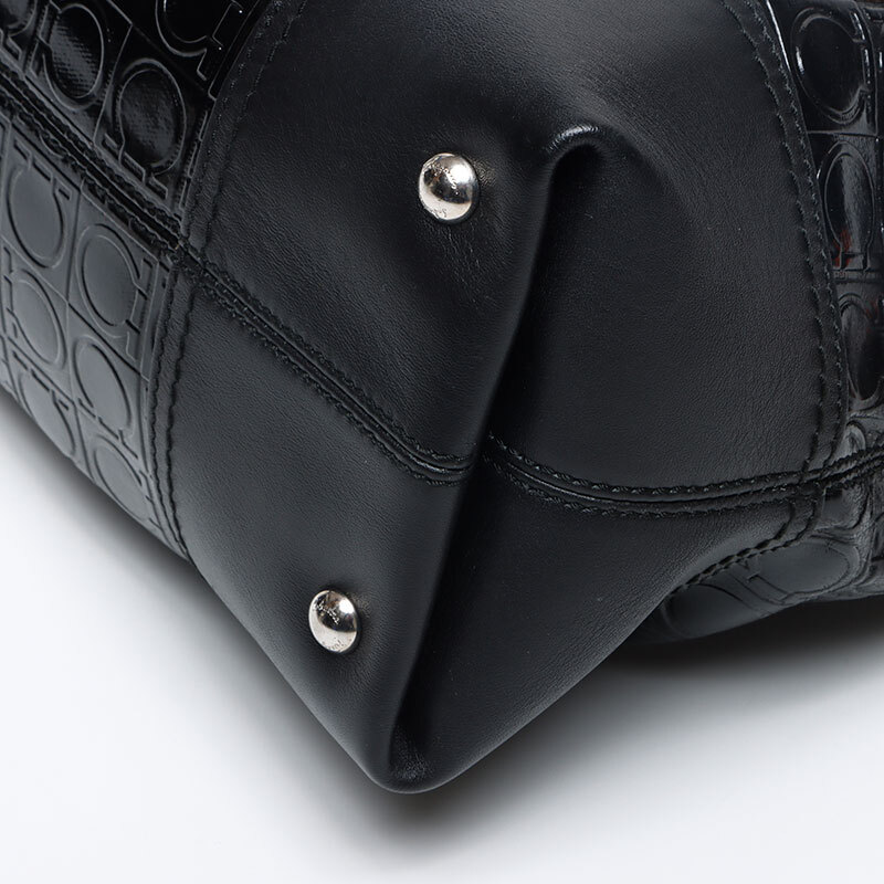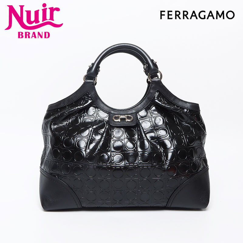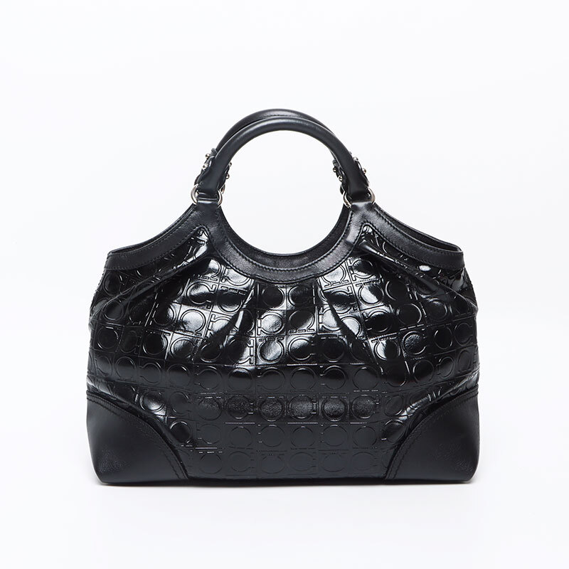 サルヴァトーレフェラガモ Salvatore Ferragamo ハンドバッグ ガンチーニ エンボス加工 シルバー金具 ブラック