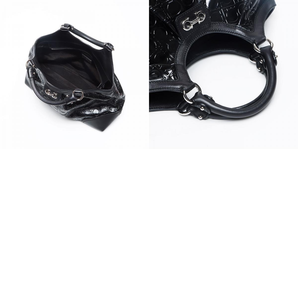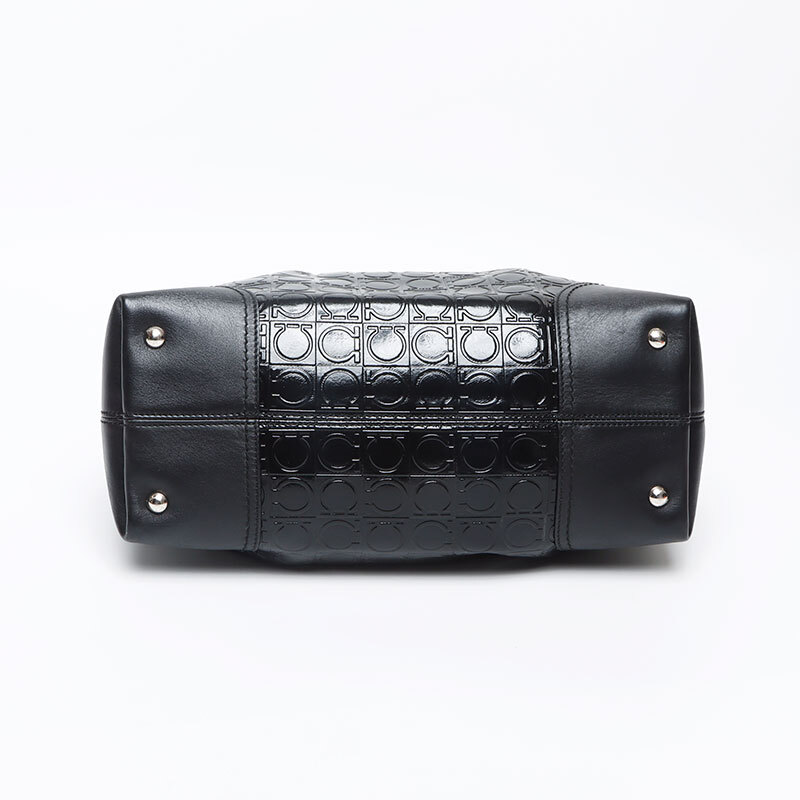 極美品 Salvatore Ferragamo ガンチーニ エンボス加工 シルバー金具 ハンドバッグ ブラック