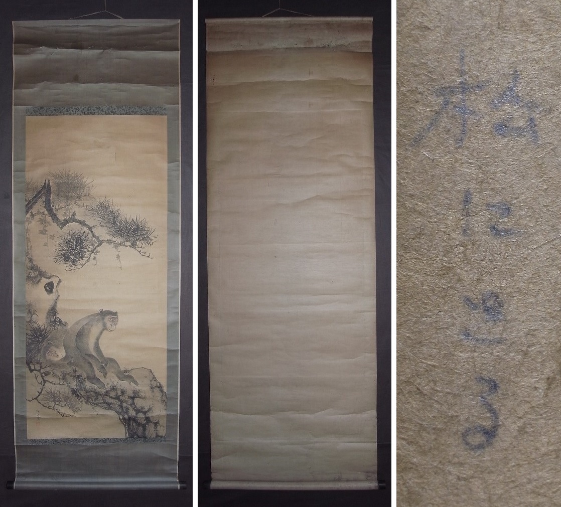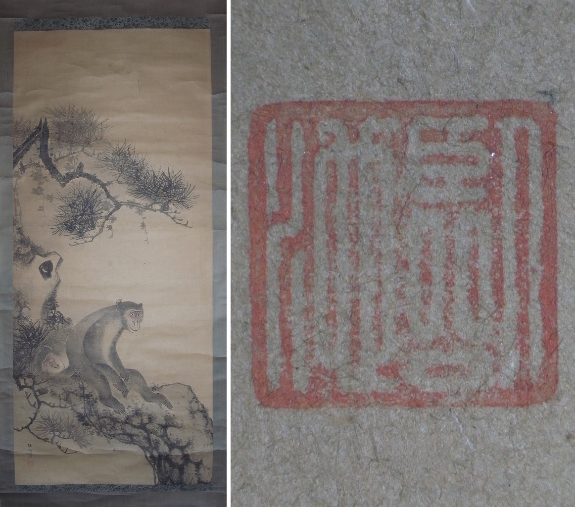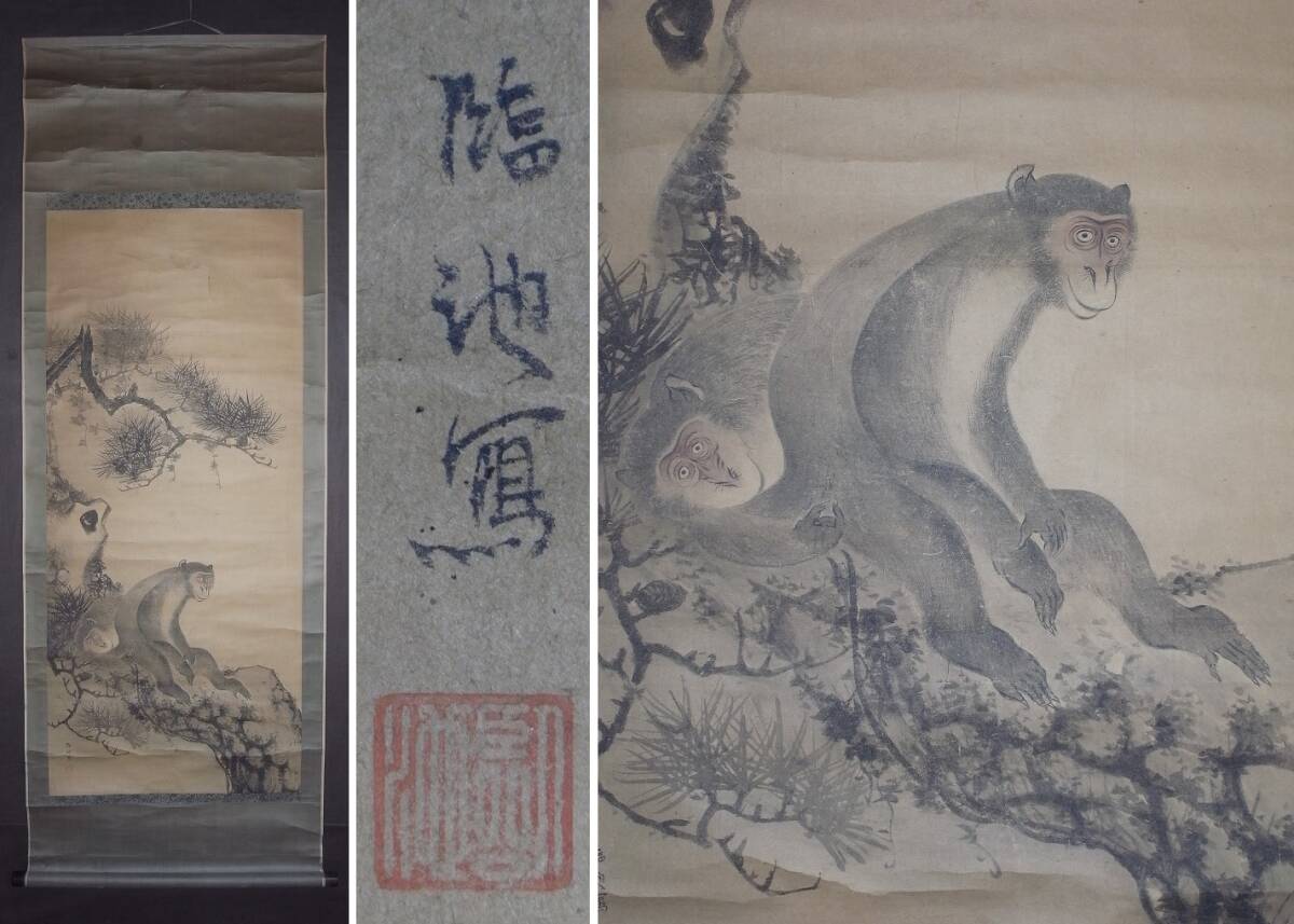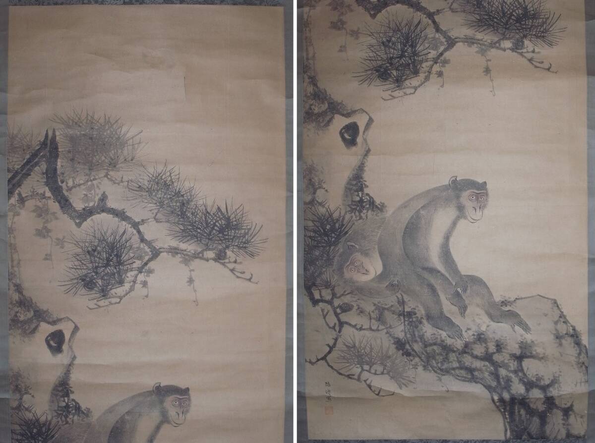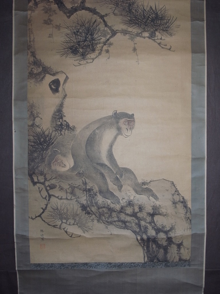 臨池寫『松に猿』掛軸〔紙本肉筆真作〕でございます。