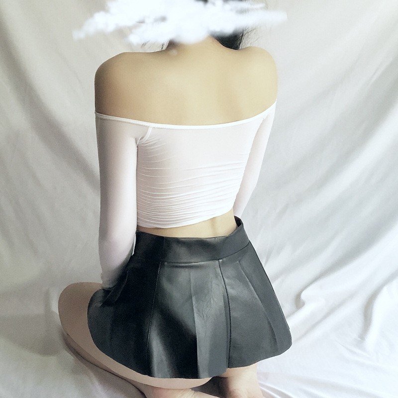 とっても短いPUレザーのフレアスカートです。 しっかりとした生地で伸縮性はほとんどありません。 ファスナーで開閉します。 女性用のMサイズです。 丈24㎝、ウェストは平置きで35㎝です。 | |||