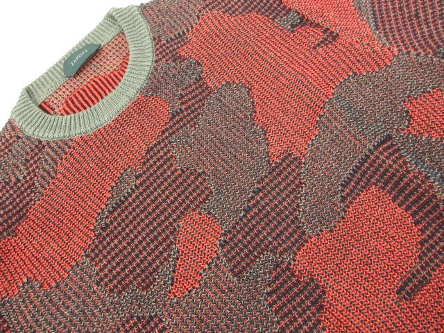 未使用【ザノーネ ZANONE】 812993 Z1347 Z5430 定価71500円 麻×綿 カモフラ風編柄 長袖ニット (メンズ) size50 マルチカラー◯10ZZN0047