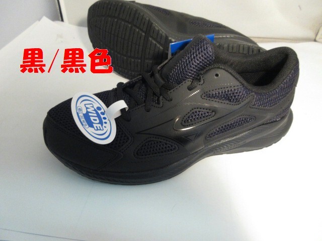 27cm メンズスニーカー ミズノマキシマイザー26 mizuno 黒/黒色 合成皮革と合成繊維 幅広 3E幅相当! お仕事履きに! 普段履きに!
