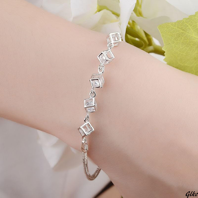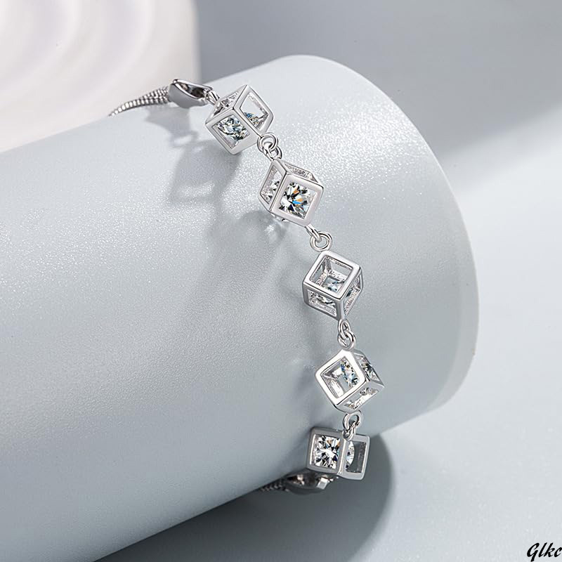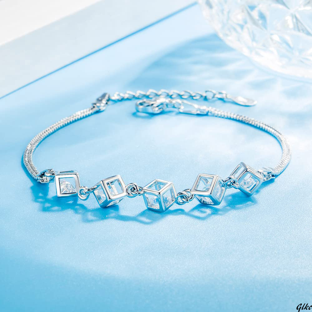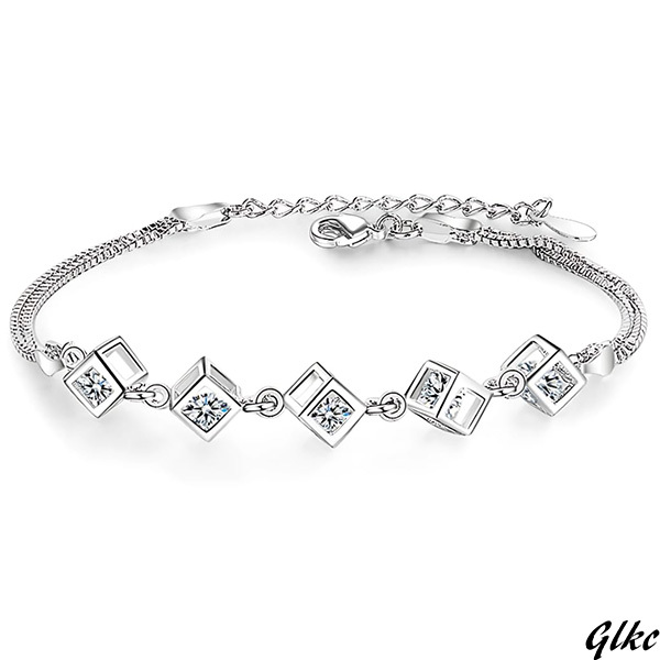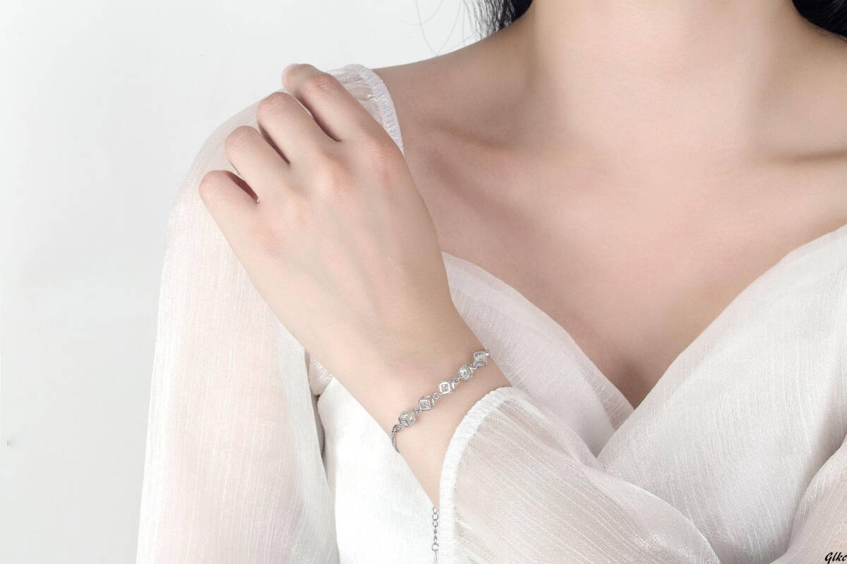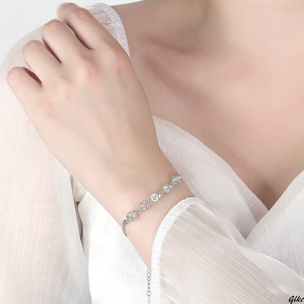 【軽やかな着け心地で、長時間の使用でも快適さを維持】ブレスレット キュービックジルコニア おしゃれ プラチナ仕上げ シルバー