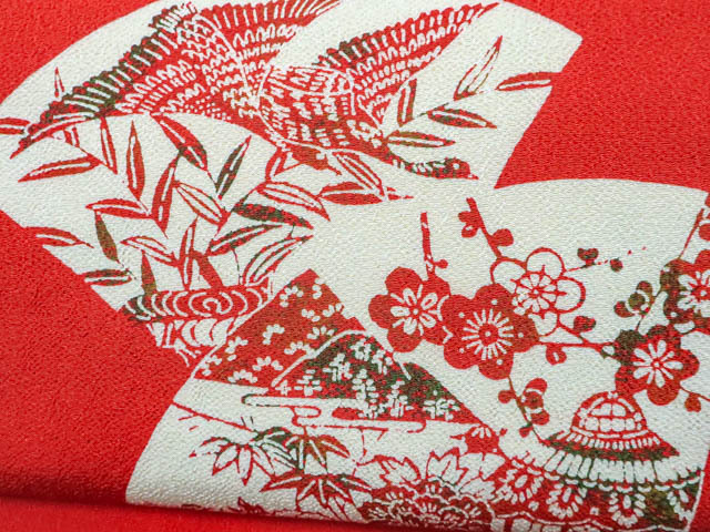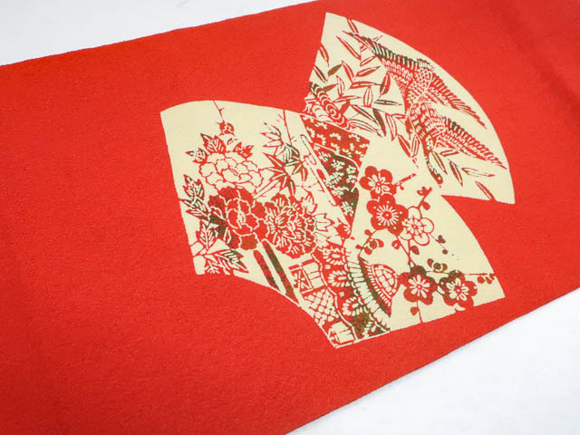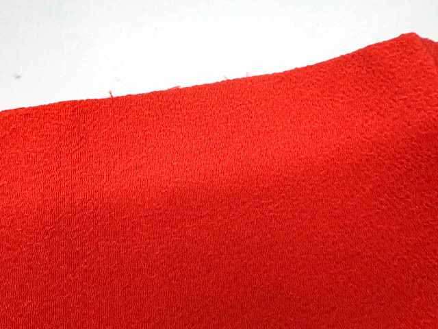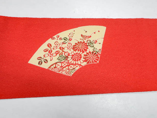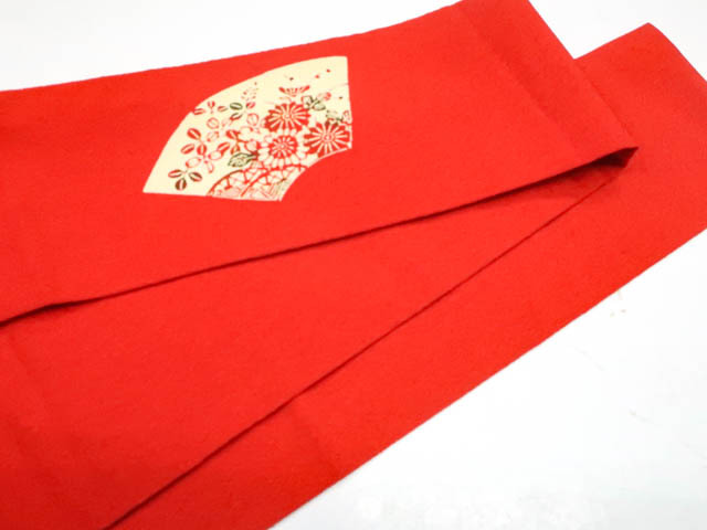 | リサイクル商品の為、無地場の薄汚れと耳のくすみがございますがご着用いただけると存じます。 地色は 赤です。 1枚目の画像が近いお色かと思われます。 素材は正絹です。 |