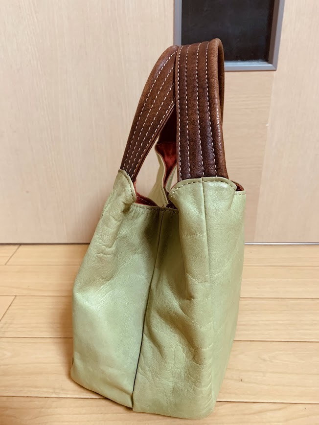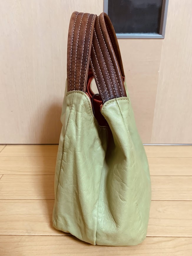 ★モンテローザ MONTEROSA レザートートバッグ 本革ハンドバッグ ライム グリーン
