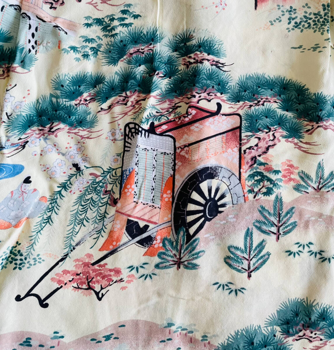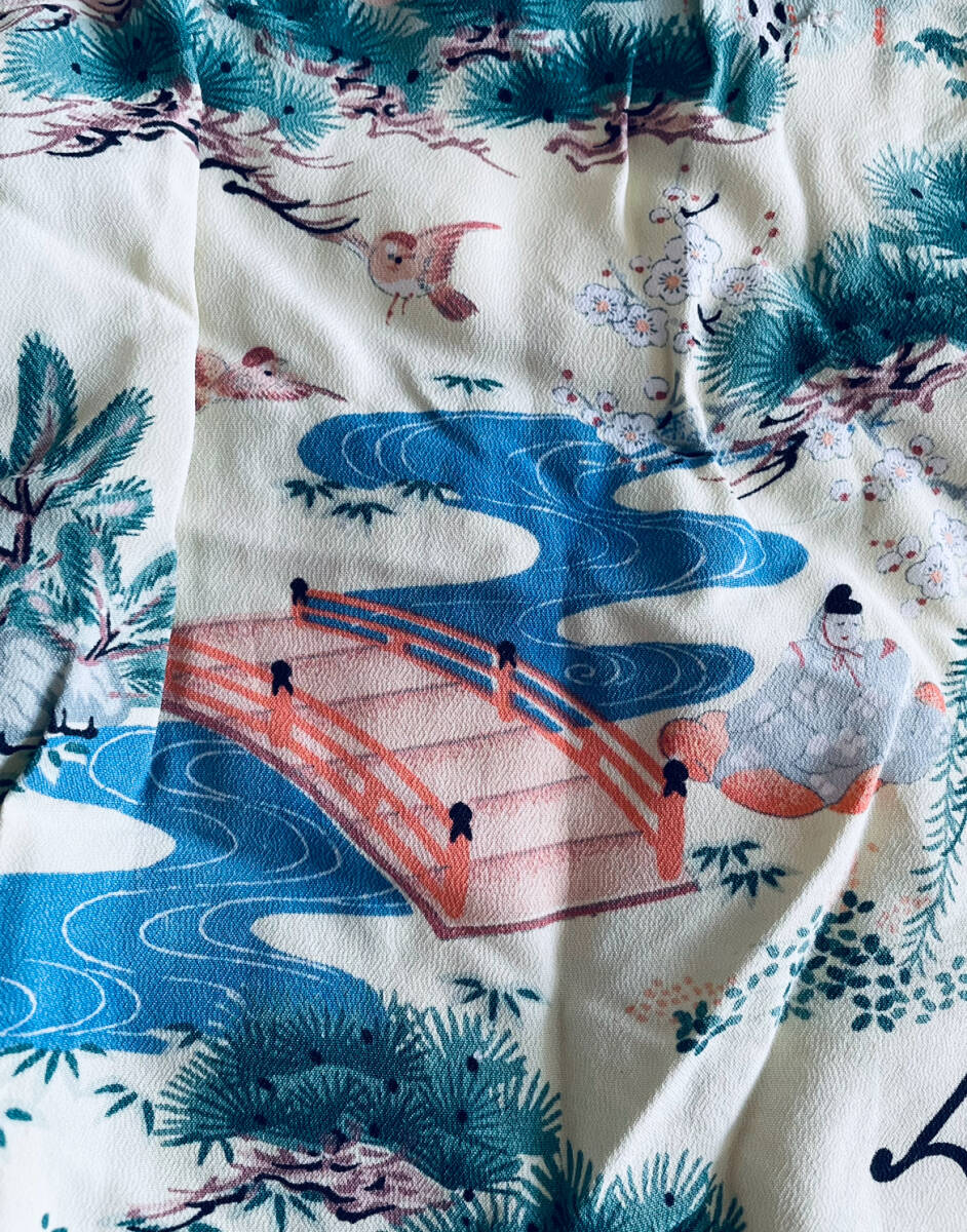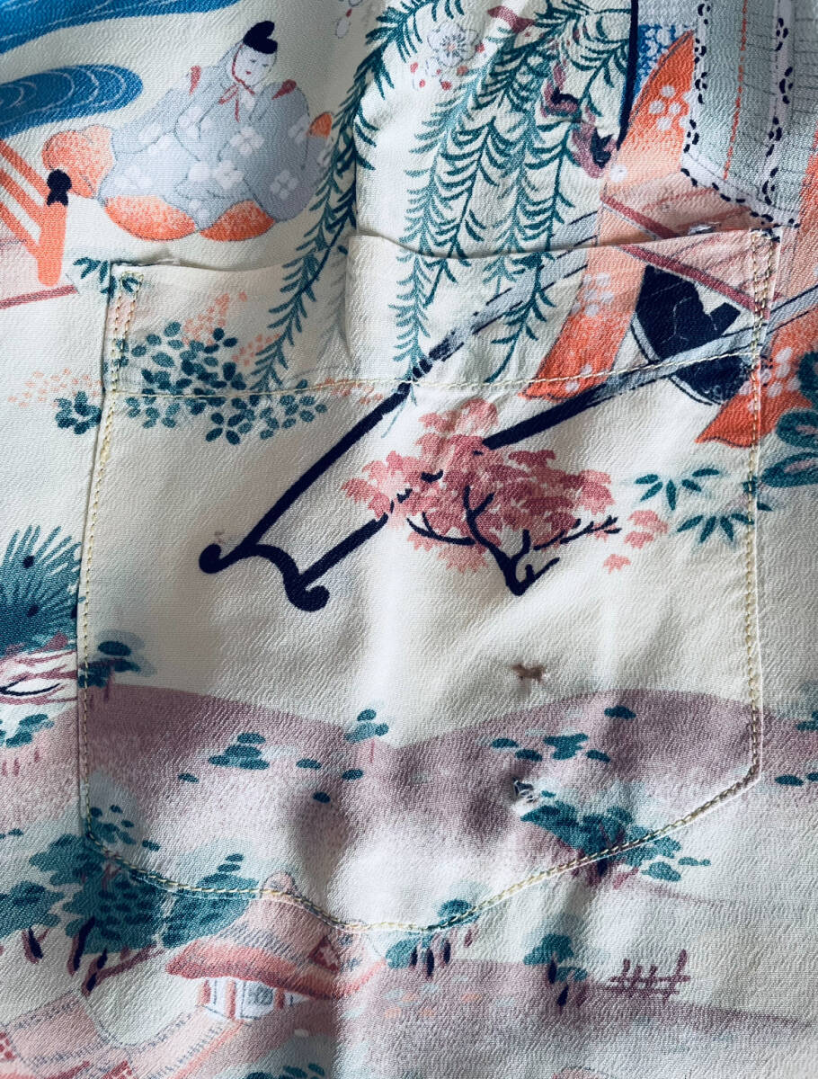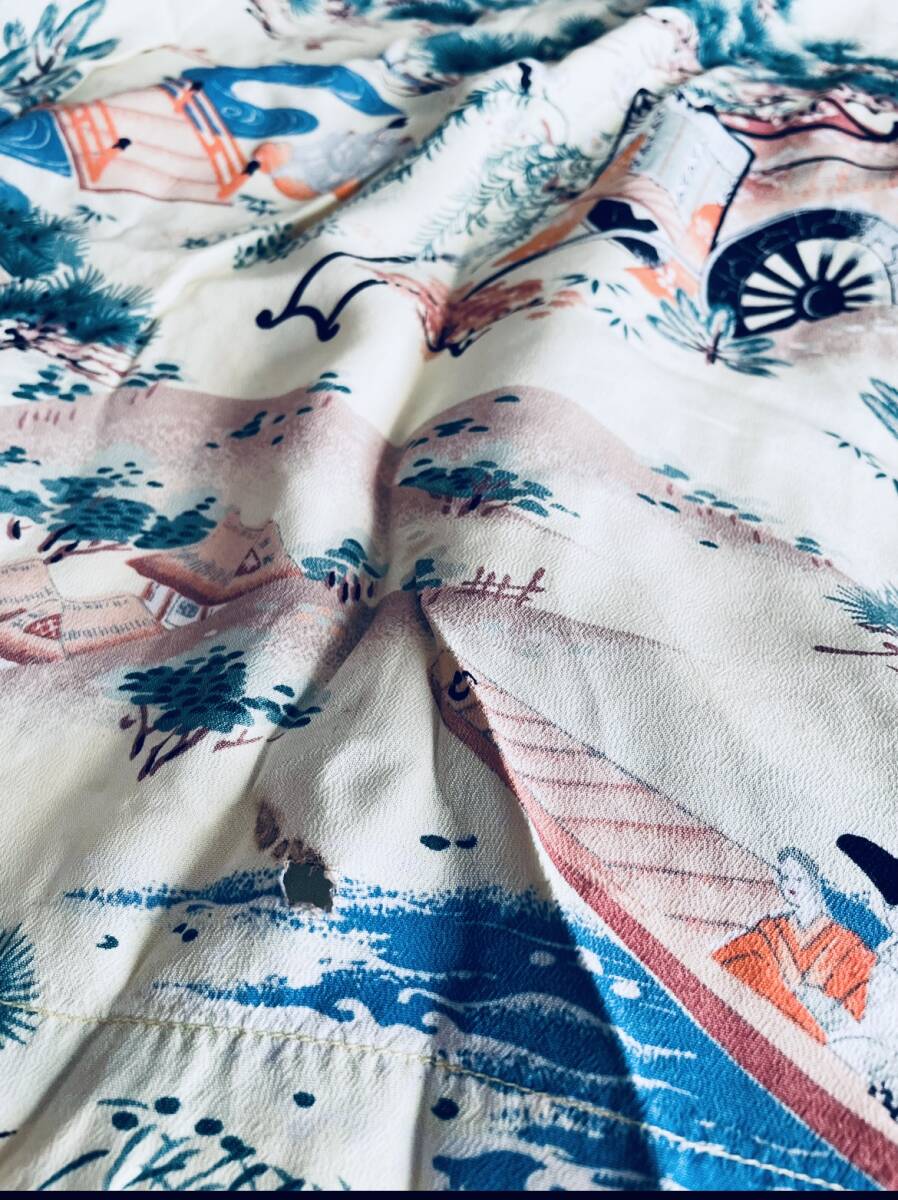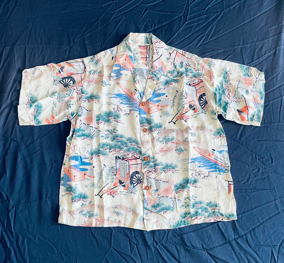 アロハシャツの中でも特に人気が高い和柄の中でも平安時代の絵巻柄は滅多に見ることができない超希少個体です