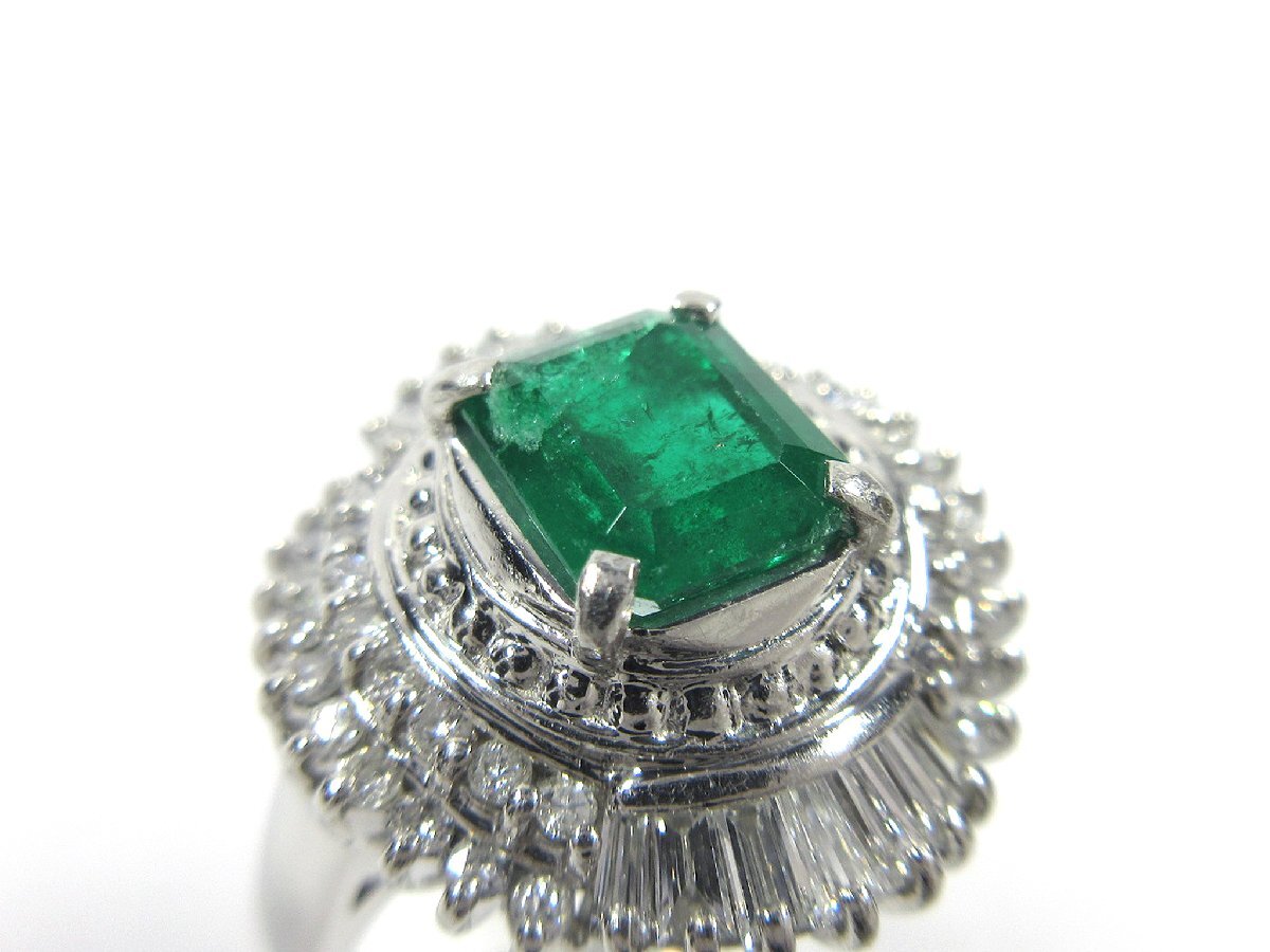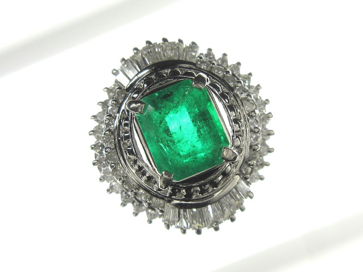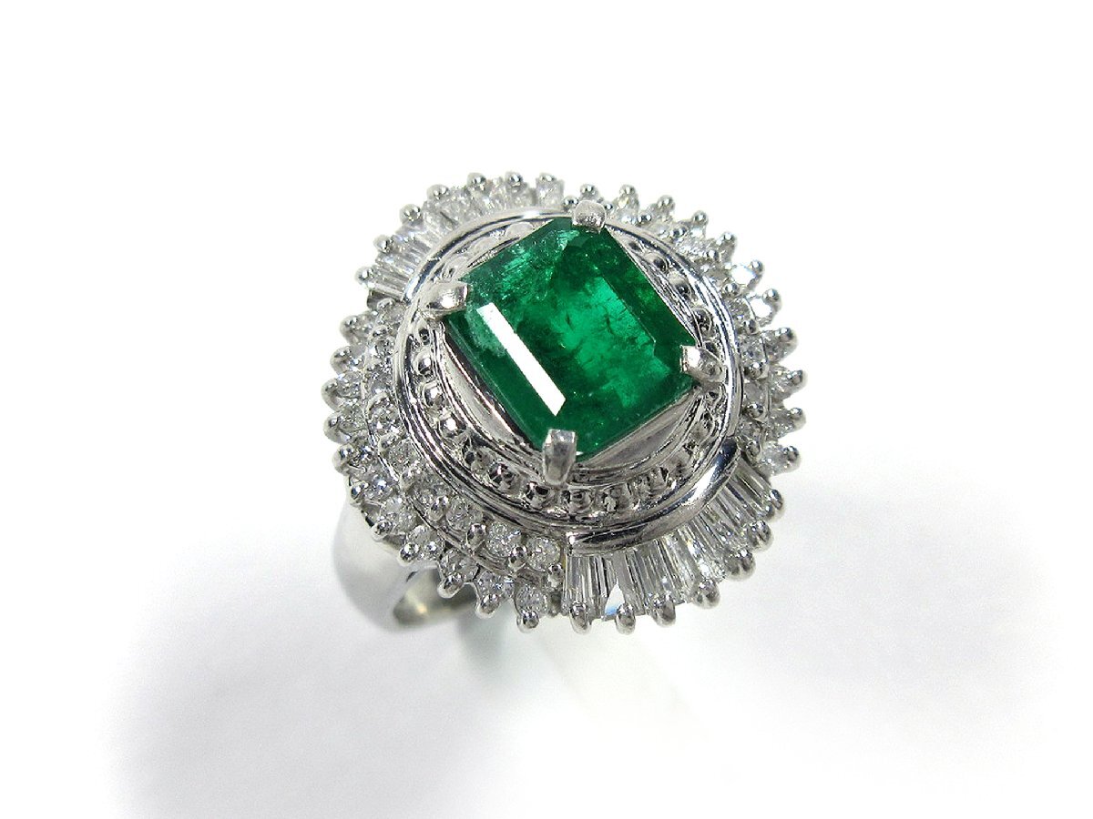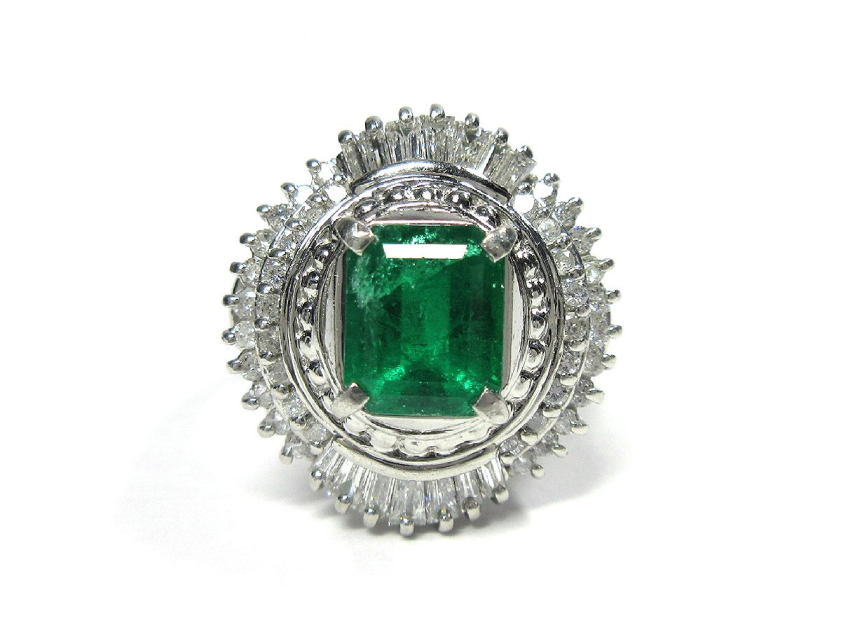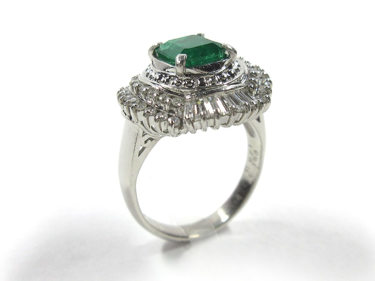 Pt900 エメラルド テーパー&ラウンドカット ダイヤモンド デザイン プラチナ リング 10号 E1.53ct D0.71ct 10.9g 中央宝石研究所鑑別書付 HKJ8