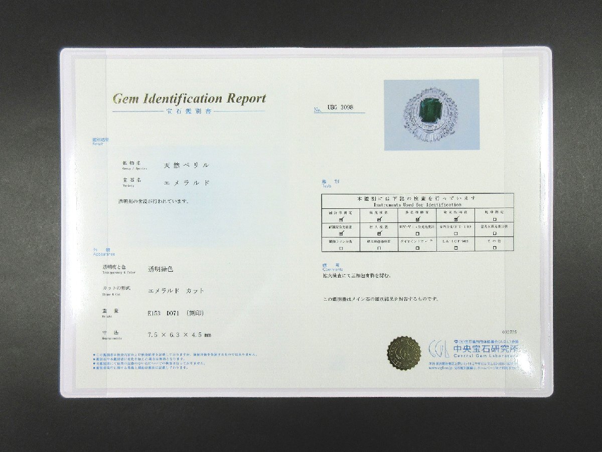 ●カラット     エメラルド:1.53ct ダイヤモンド:0.71ct