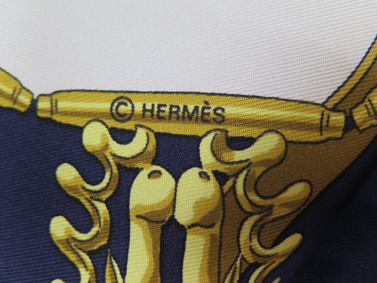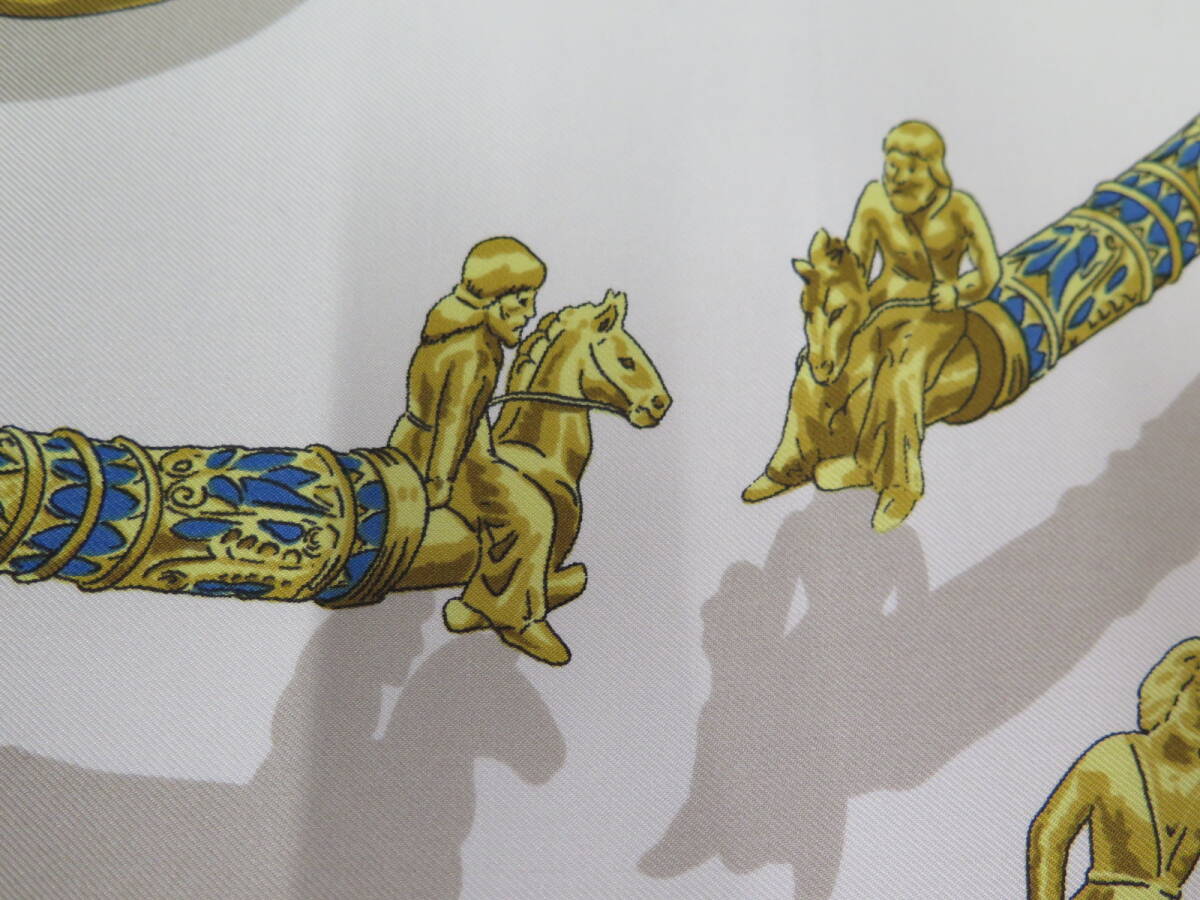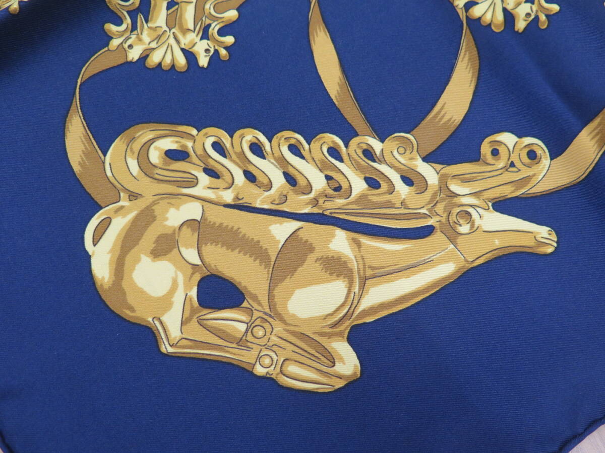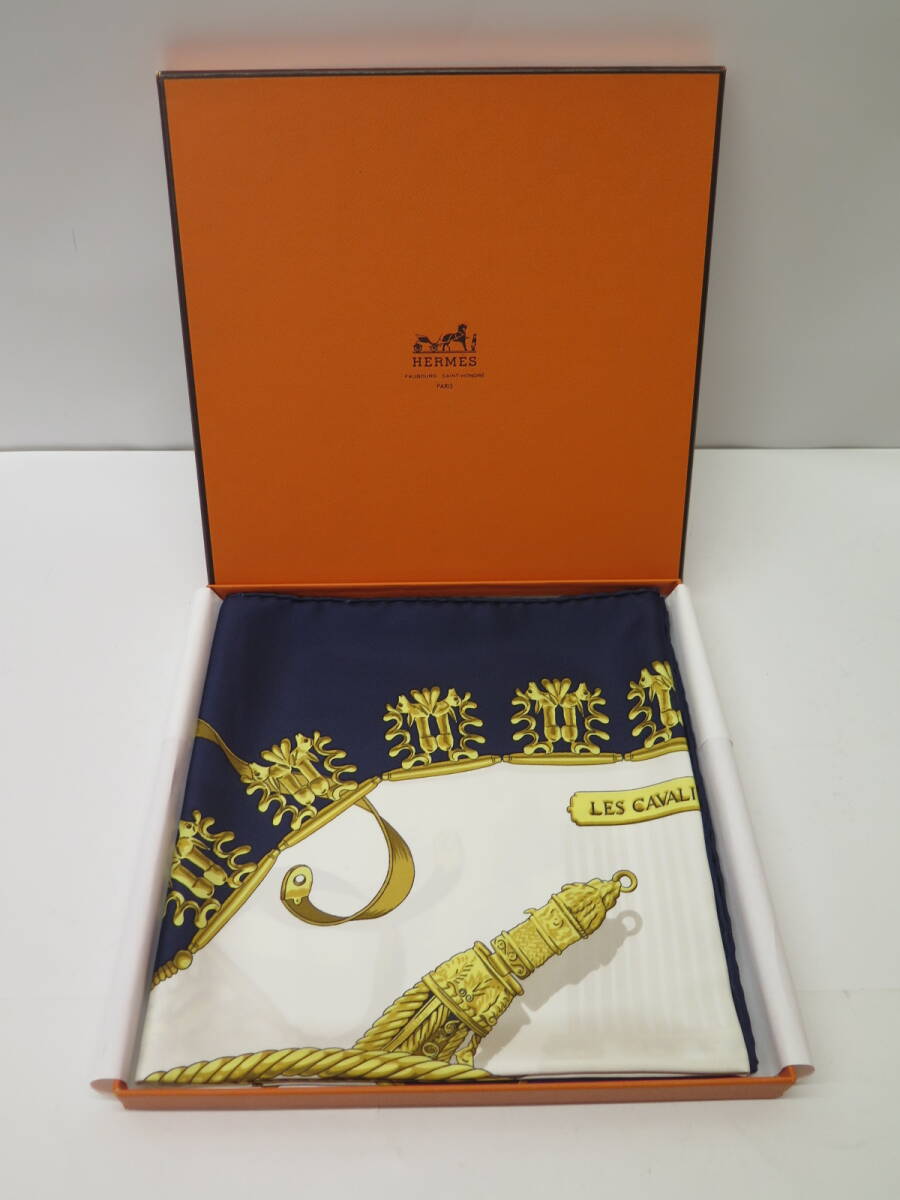 美品(多分未使用)HERMES LES CAVALIERS D’OR エルメス 黄金の騎士 カレ90 シルク100% スカーフ ネイビー系