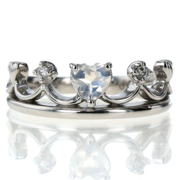 商品紹介 | キュートなハートシェイプのブルームーンストーンがあしらわれた指輪は、フェミニンな印象を与えてくれます。 |