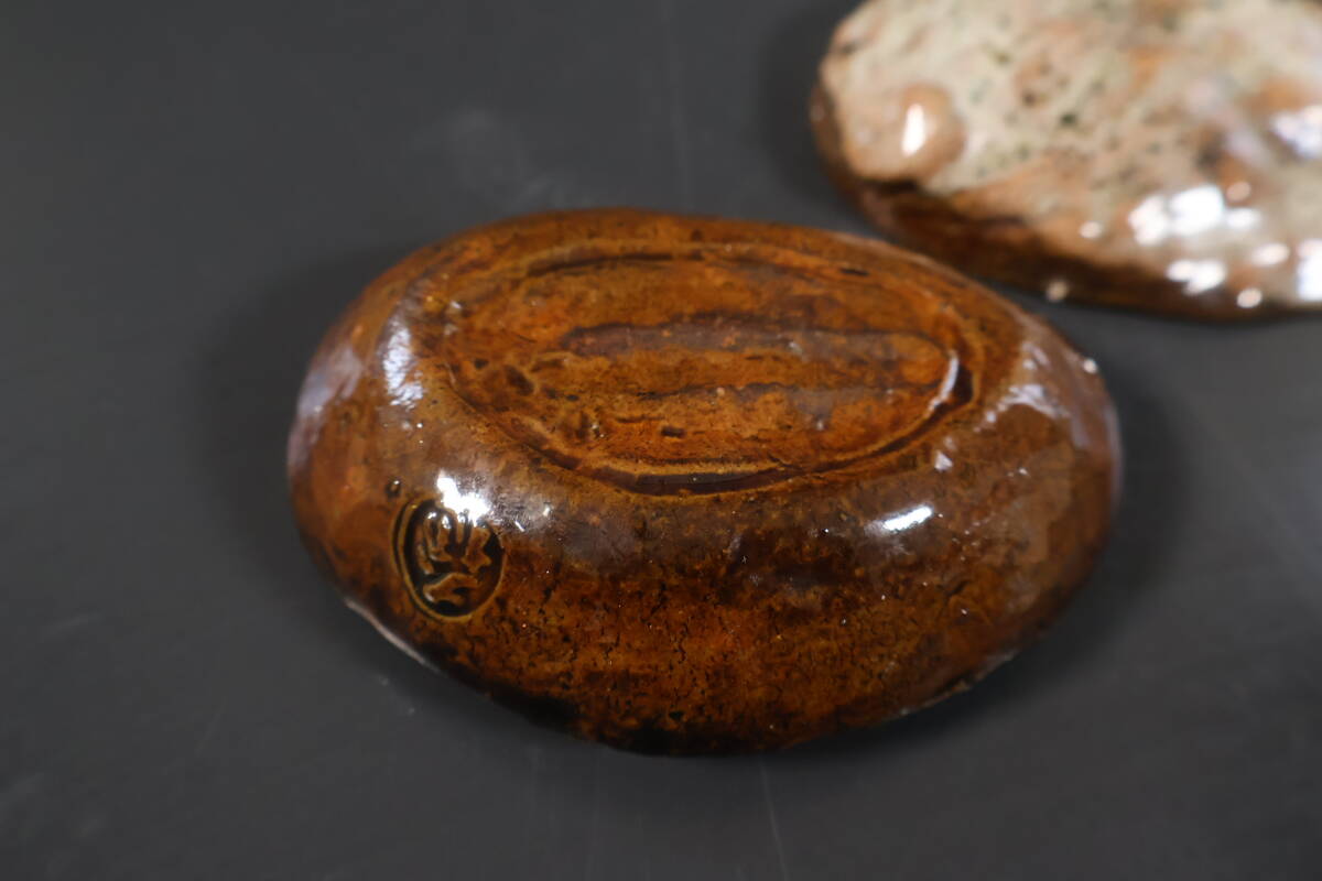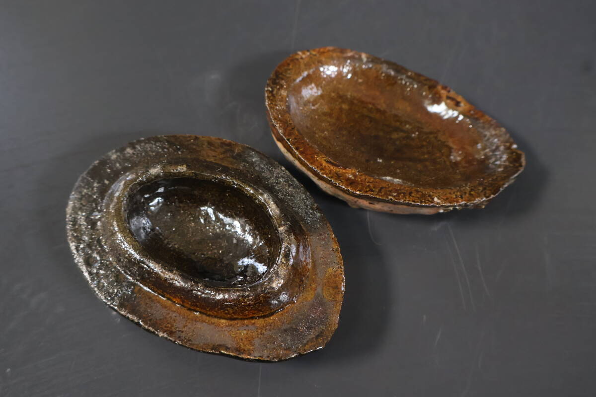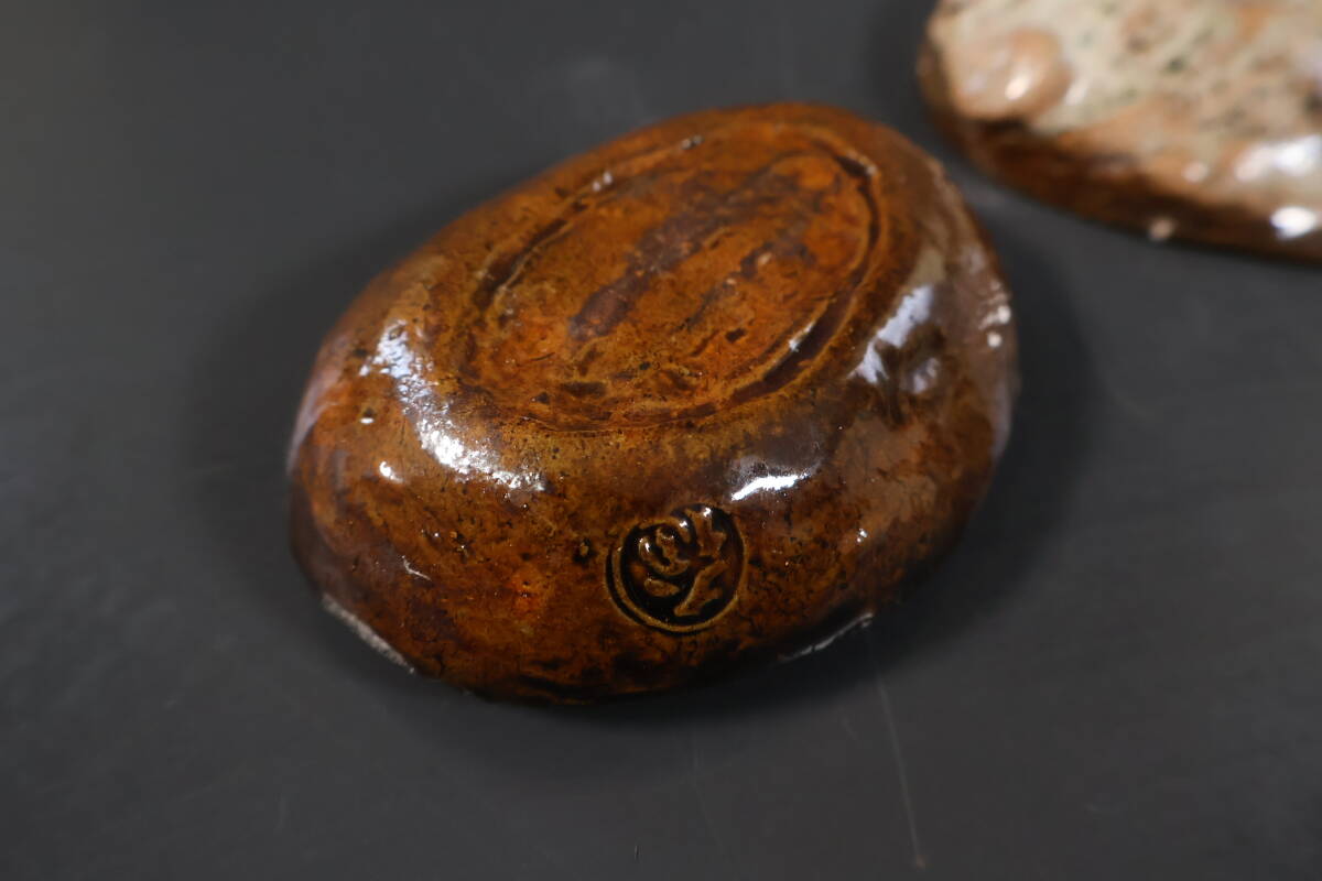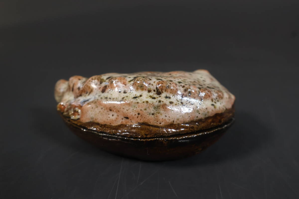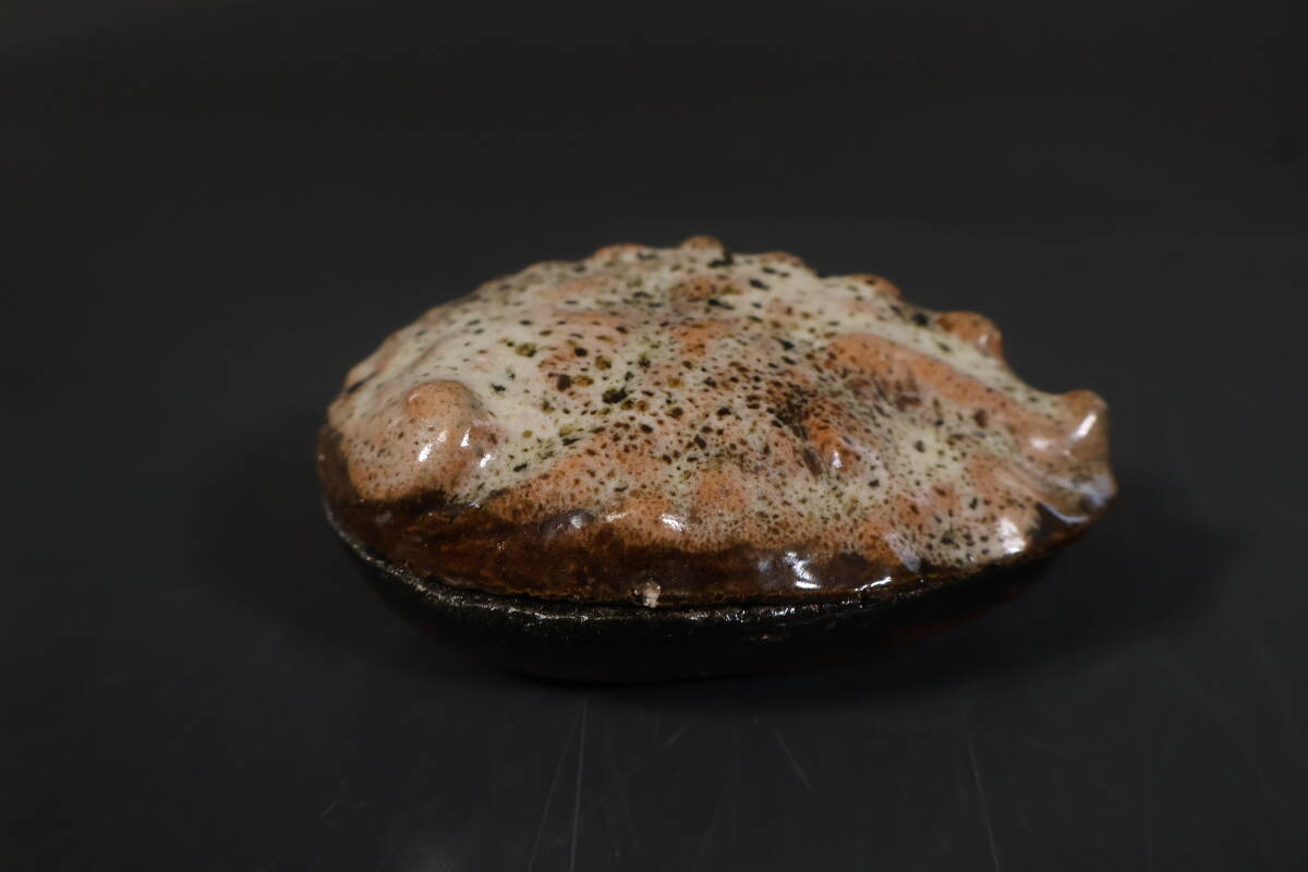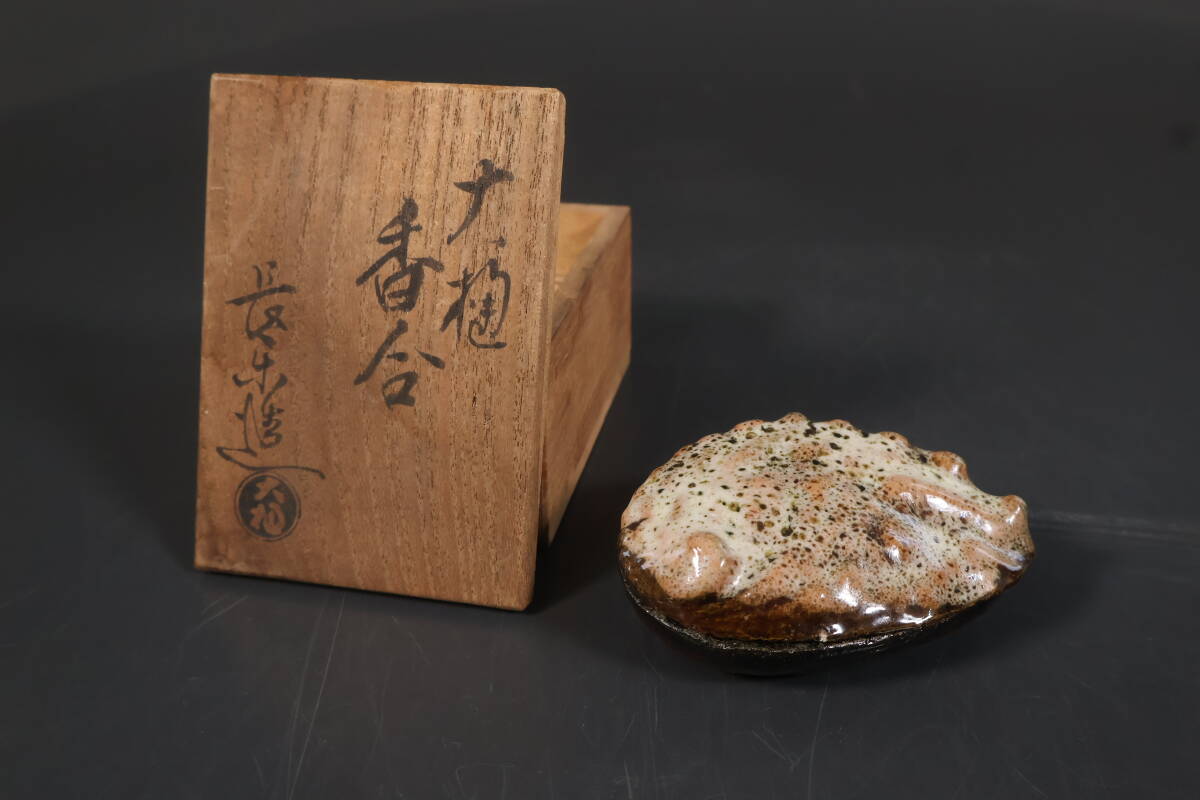 【和】(A2231) 作家物 大樋長楽 大樋鮑貝香合 共箱有 茶道具